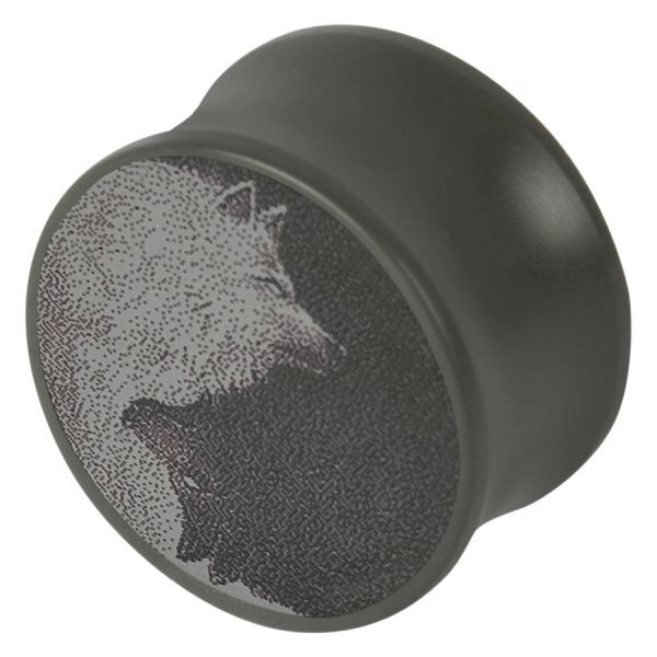 Plug realizzato in titanio con colorazione nera. La parte frontale è caratterizzata dal disegno di due lupi, uno bianco e uno nero, disposti a formare il simbolo dello Ying e dello Yang.