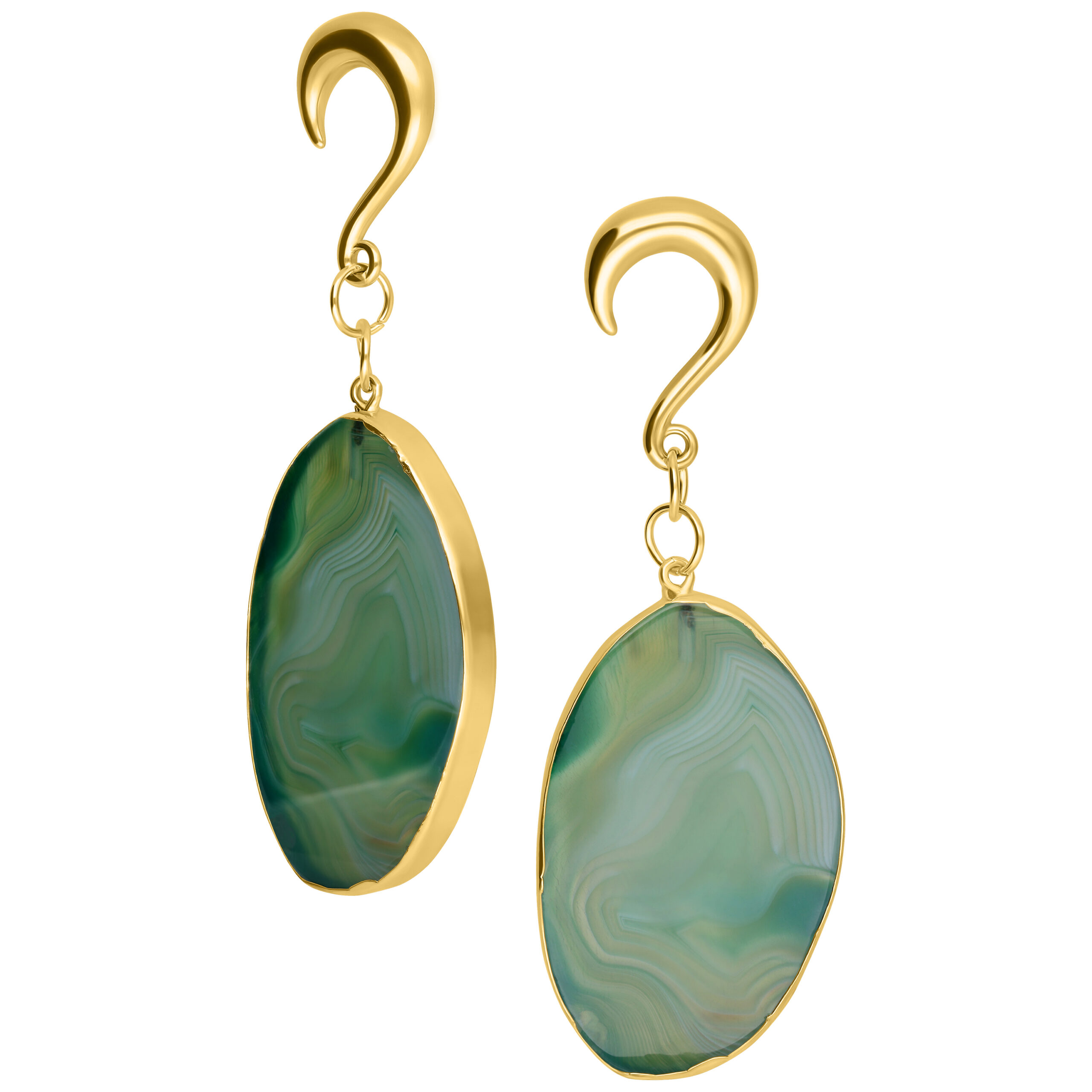 A differenza dei nostri tunnel, questi eleganti pesi per le orecchie vengono forniti in coppia. I ganci sono in acciaio chirurgico 316L di alta qualità, il ciondolo è in pietra naturale. Per mantenere i vostri Ear Weights così accattivanti, dovreste rimuoverli prima di nuotare o fare la doccia.