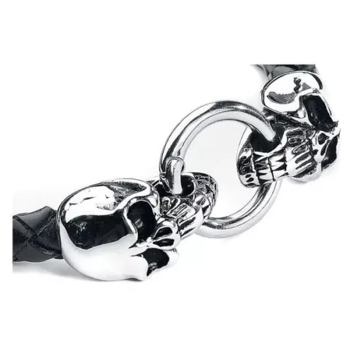 MysteriumBracciale teschi in acciaio e pelleLBL35 -