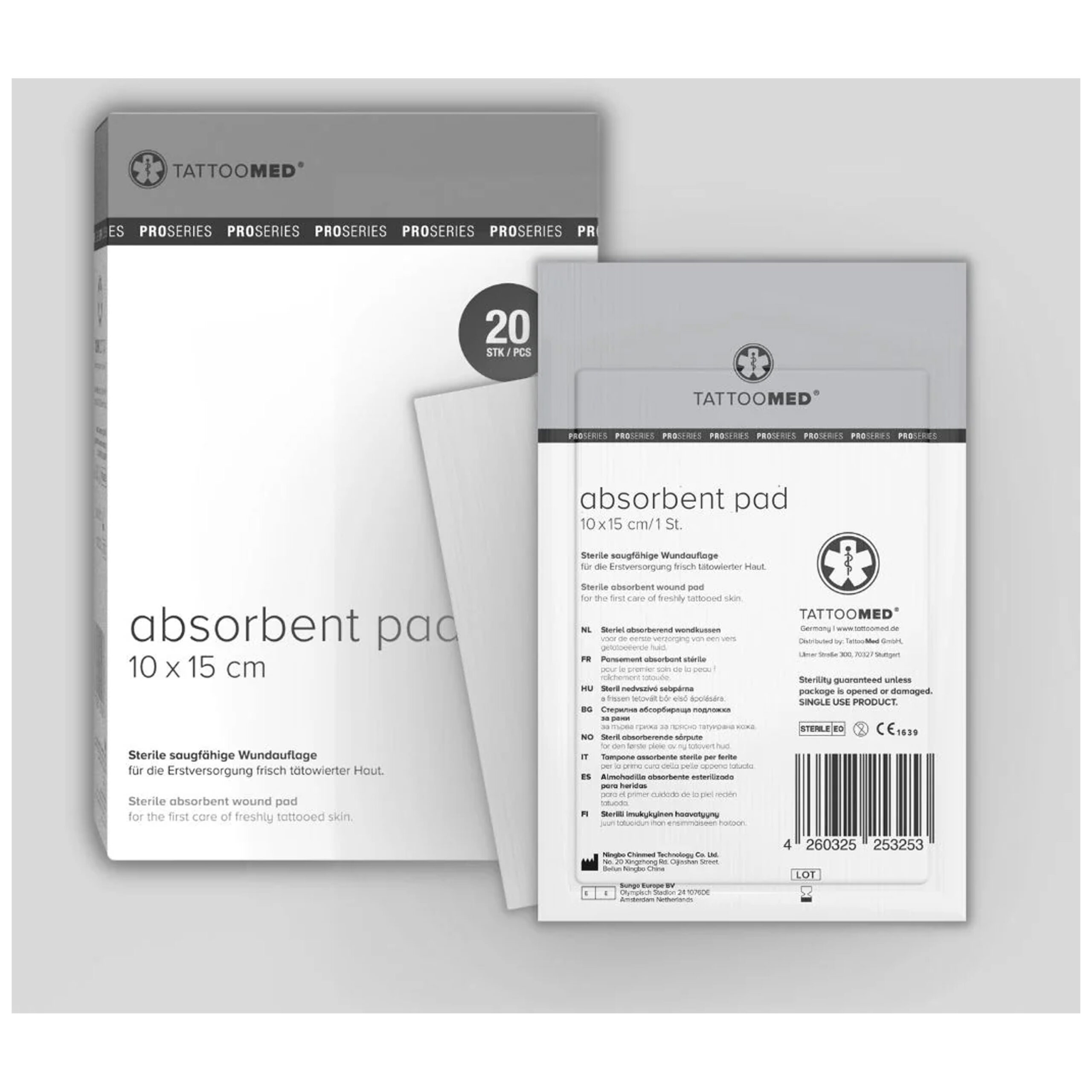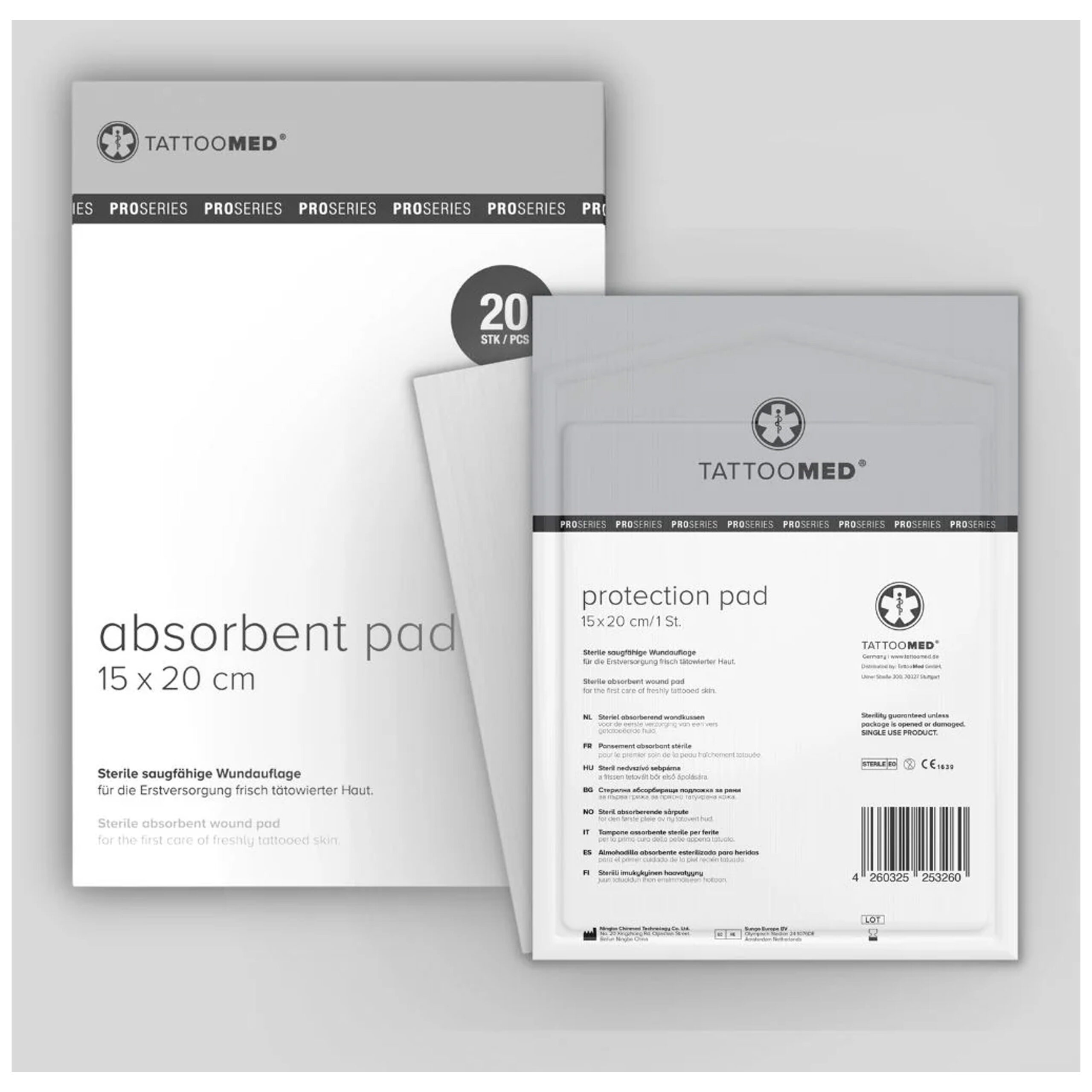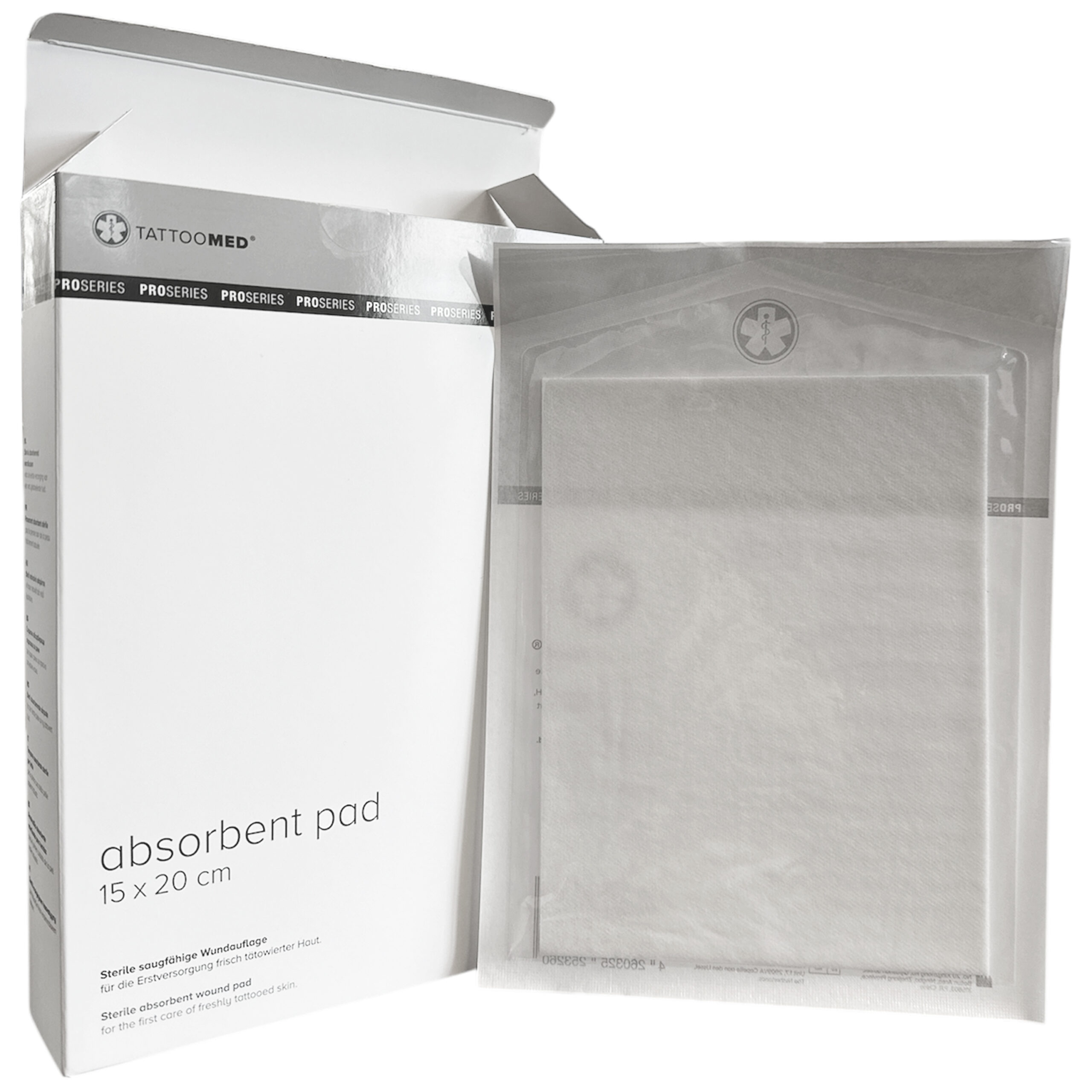 Il nostro prodotto Pro Series TattooMed Absorbent Pad offre la funzione ottimale per sostenere la pelle durante questo periodo di tempo stressante e rischioso per essa. Lo speciale tessuto di cotone cellulosa, che assicura un’assorbenza ottimale, assorbe i residui di inchiostro e il liquido della ferita e previene anche l’eccessiva essiccazione – un’ottima alternativa per chi soffre di allergie.