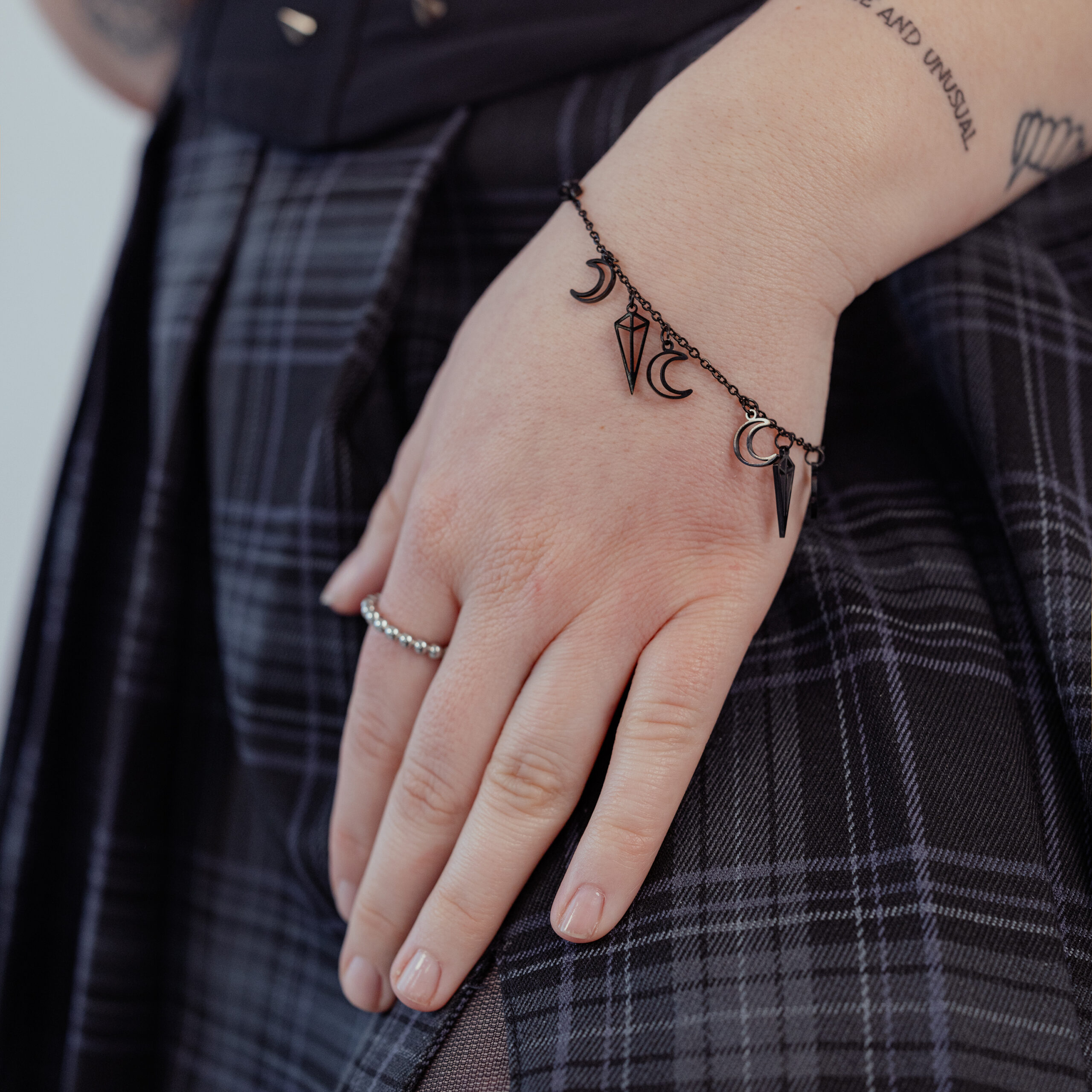 Questo bracciale vi accompagna in un viaggio nei miti nascosti, nei mondi onirici e nelle sfere spirituali delle lunghe notti estive. La sottile catena in acciaio inossidabile e i piccoli ciondoli attireranno sguardi magici! .