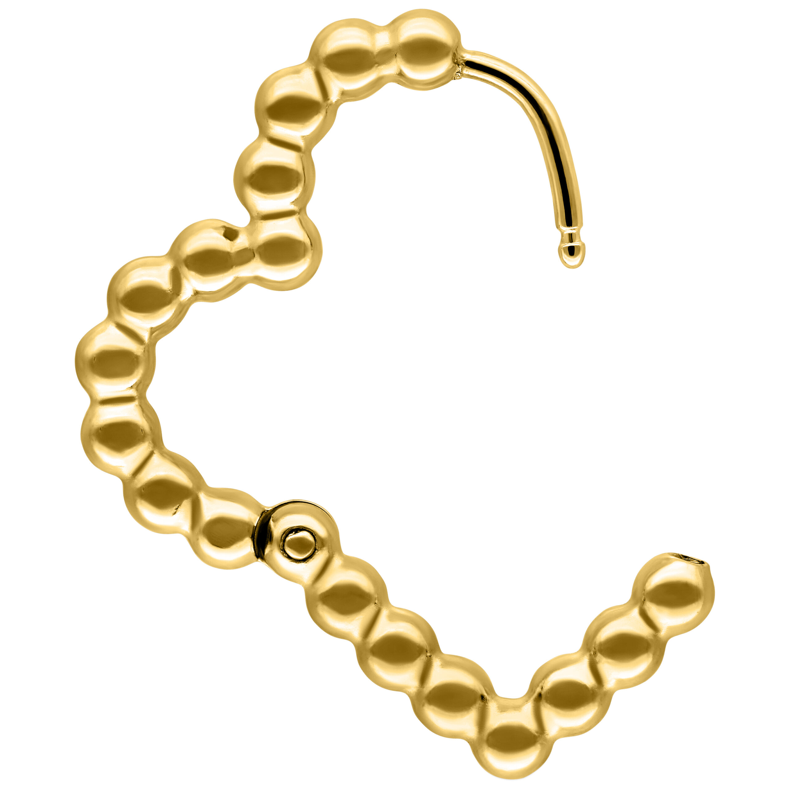 Possono essere indossati sia nei normali fori per le orecchie che nei tunnel. Il perno è spesso 1,0 mm e i cerchi hanno un diametro di 16,5 x 18,0 mm.