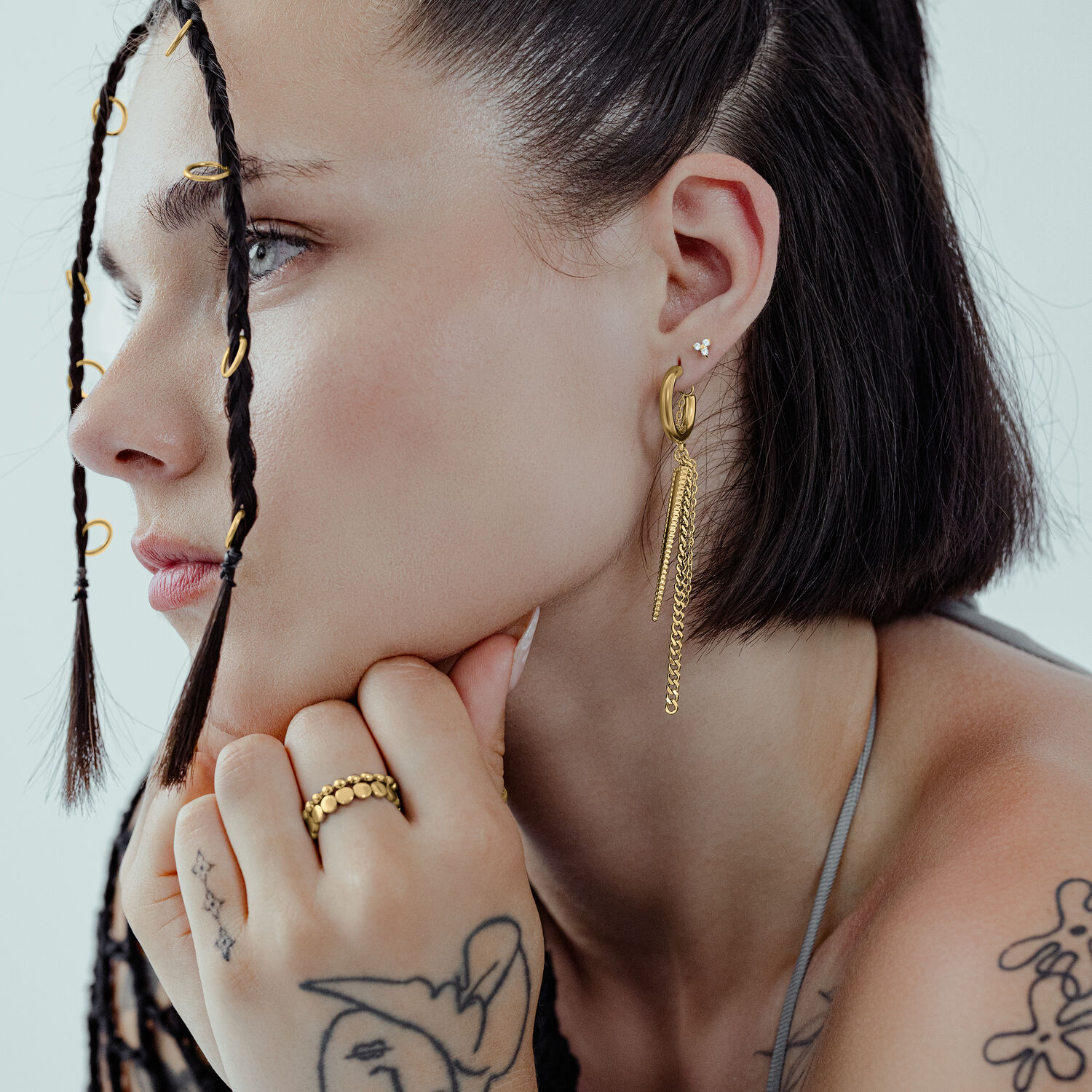 Questi orecchini sono realizzati in acciaio inossidabile 316L di alta qualità, che li rende non solo resistenti ai graffi, ma anche impermeabili e altamente durevoli per l’uso quotidiano. Sono sicuri per la pelle sensibile e non si appannano. La superficie è dotata di un pregiato rivestimento in PVD, che non solo offre una lucentezza straordinaria, ma garantisce anche una lunga durata.