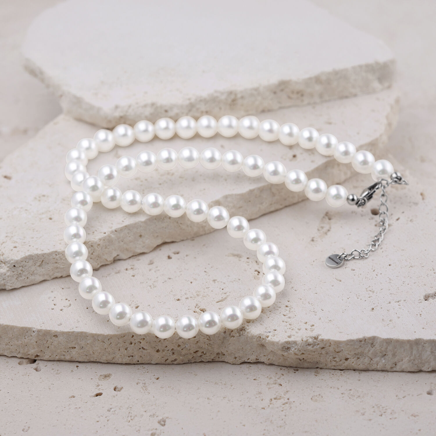 Questa elegante collana di perle, realizzata in pregiato acciaio chirurgico 316L, unisce un design senza tempo a una qualità destinata a durare. Le perle sintetiche perfettamente levigate, con diametro di 7 mm, sono disponibili in raffinato argento o in caldo oro scintillante, regalando un tocco glamour a qualsiasi outfit.