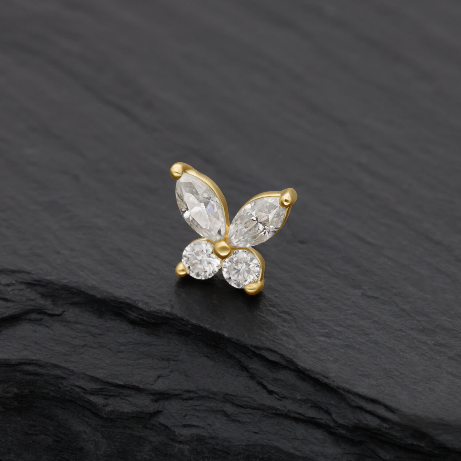 14K Gold Push-Fit Moissanit Butterfly Attachment