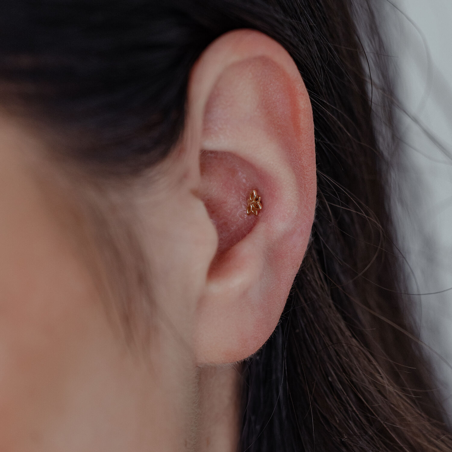 Il nostro elegante terminale Lotus, parte della collezione Wildcat, è realizzato in pregiato oro giallo 14 carati (585) e si abbina perfettamente al labret Perfect Fit (14K). Questo elemento esclusivo conquista con un delicato design a forma di loto, dalle dimensioni di 5.5 x 3.6 mm e un peso ultraleggero di soli 0.1 g – ideale per chi ama gioielli di lusso comodi da indossare ogni giorno.