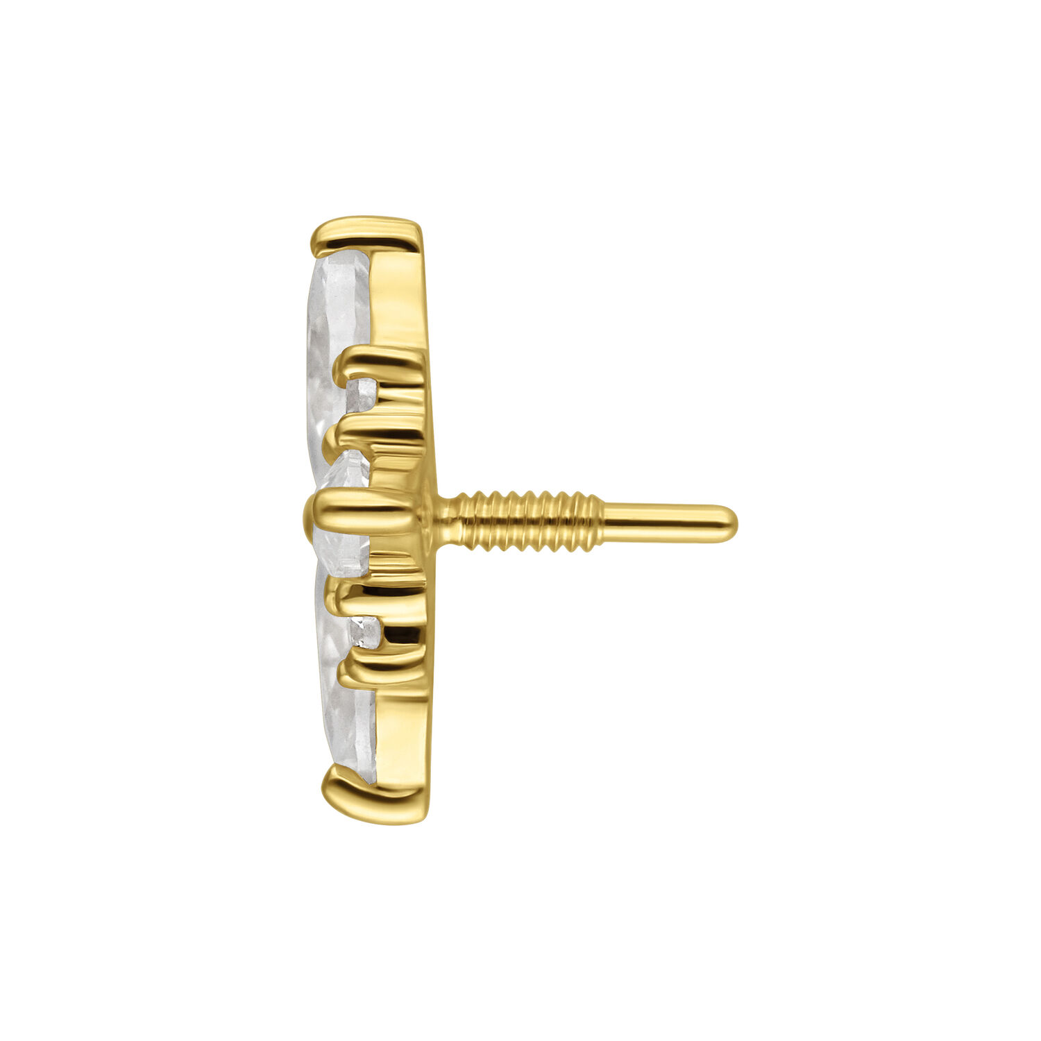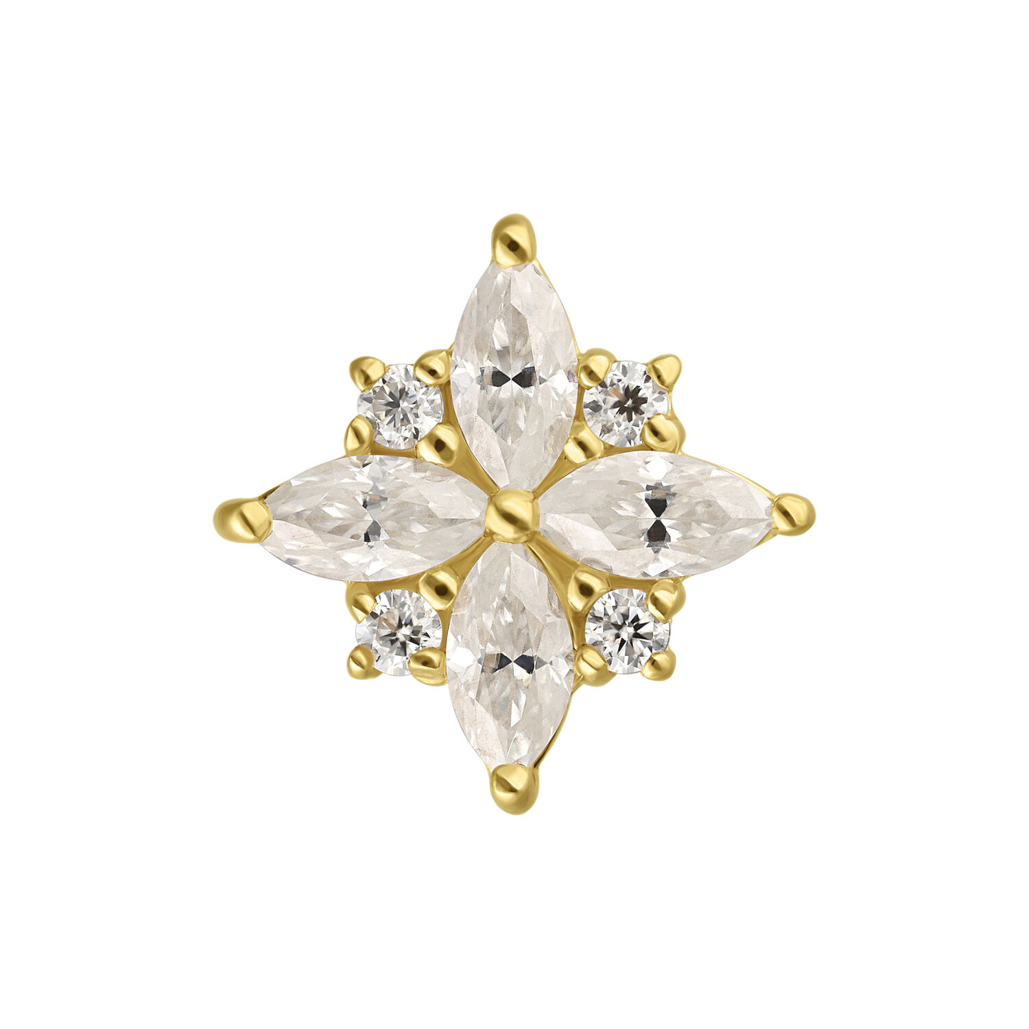 La disposizione armoniosa delle forme e dei riflessi dona al gioiello una presenza radiosa, delicata e femminile. Progettato per una perfetta compatibilità con il labret Perfect Fit 14K, garantisce una tenuta sicura, un comfort duraturo e una finitura elegante.
