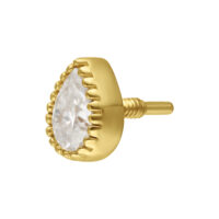 Il terminale Perfect Fit Drop in oro 14K con Moissanite unisce una lavorazione artigianale di lusso a un’eleganza senza tempo. Realizzato in oro giallo 14 carati (585) finemente lucidato, questo terminale presenta un raffinato design a goccia, impreziosito da una scintillante pietra Moissanite che sprigiona una brillantezza straordinaria.