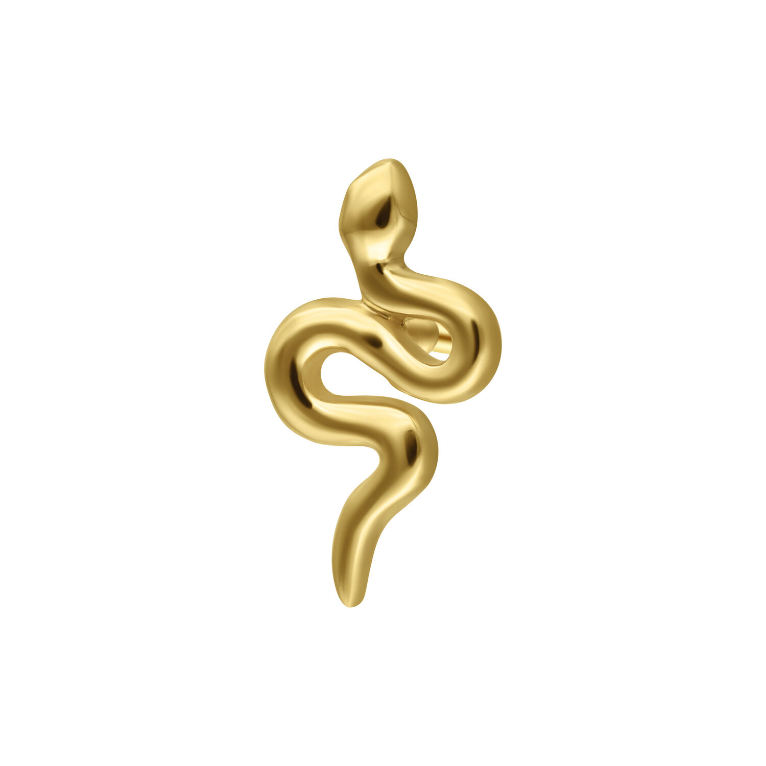 l terminale Perfect Fit in oro 14K a forma di serpente unisce un design deciso a una lavorazione artigianale di lusso. Realizzato in oro giallo 14 carati (585) finemente lucidato, questo terminale per piercing affascina con l’elegante forma sinuosa del serpente – un simbolo senza tempo di trasformazione, forza e rinascita.