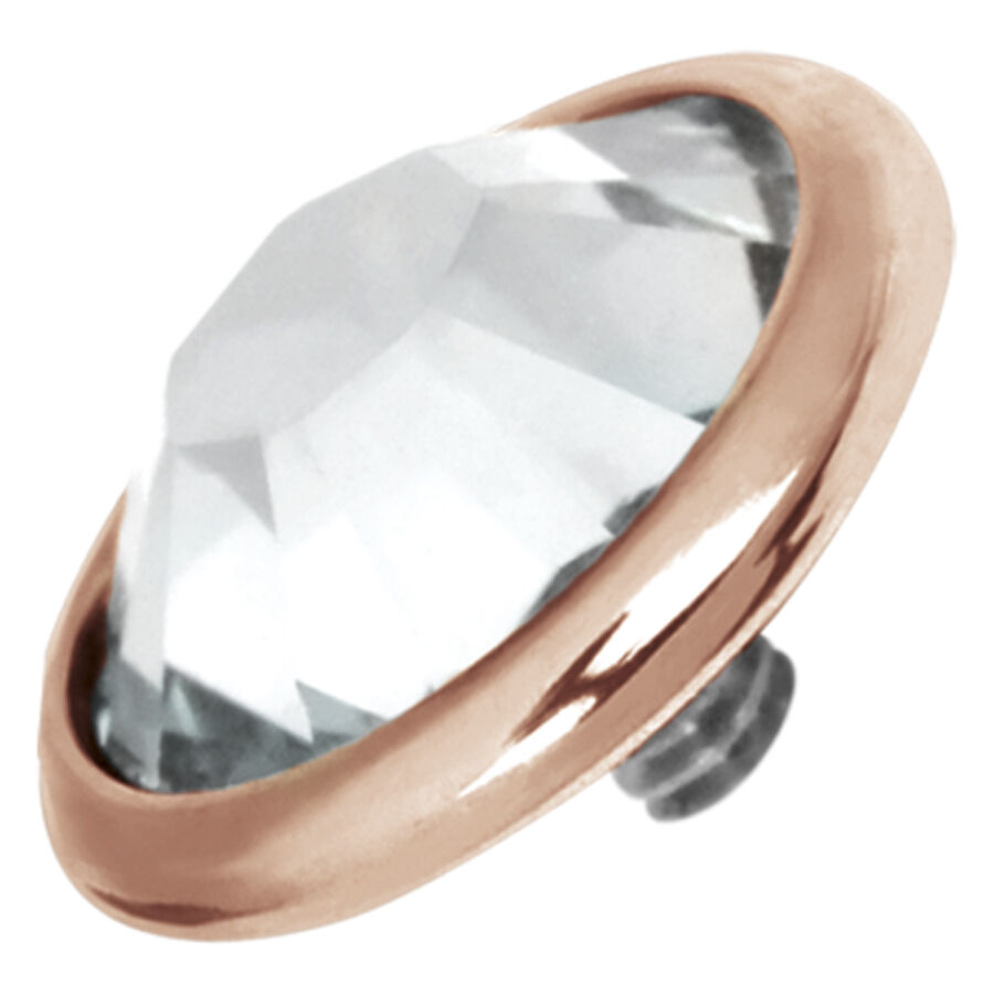 Disco in titanio colore oro rosa con cristallo prezioso in diverse colorazioni, ideale per completare o rinnovare l’aspetto di un piercing. Il disco è particolarmente indicato come terminale per dermal anchor.