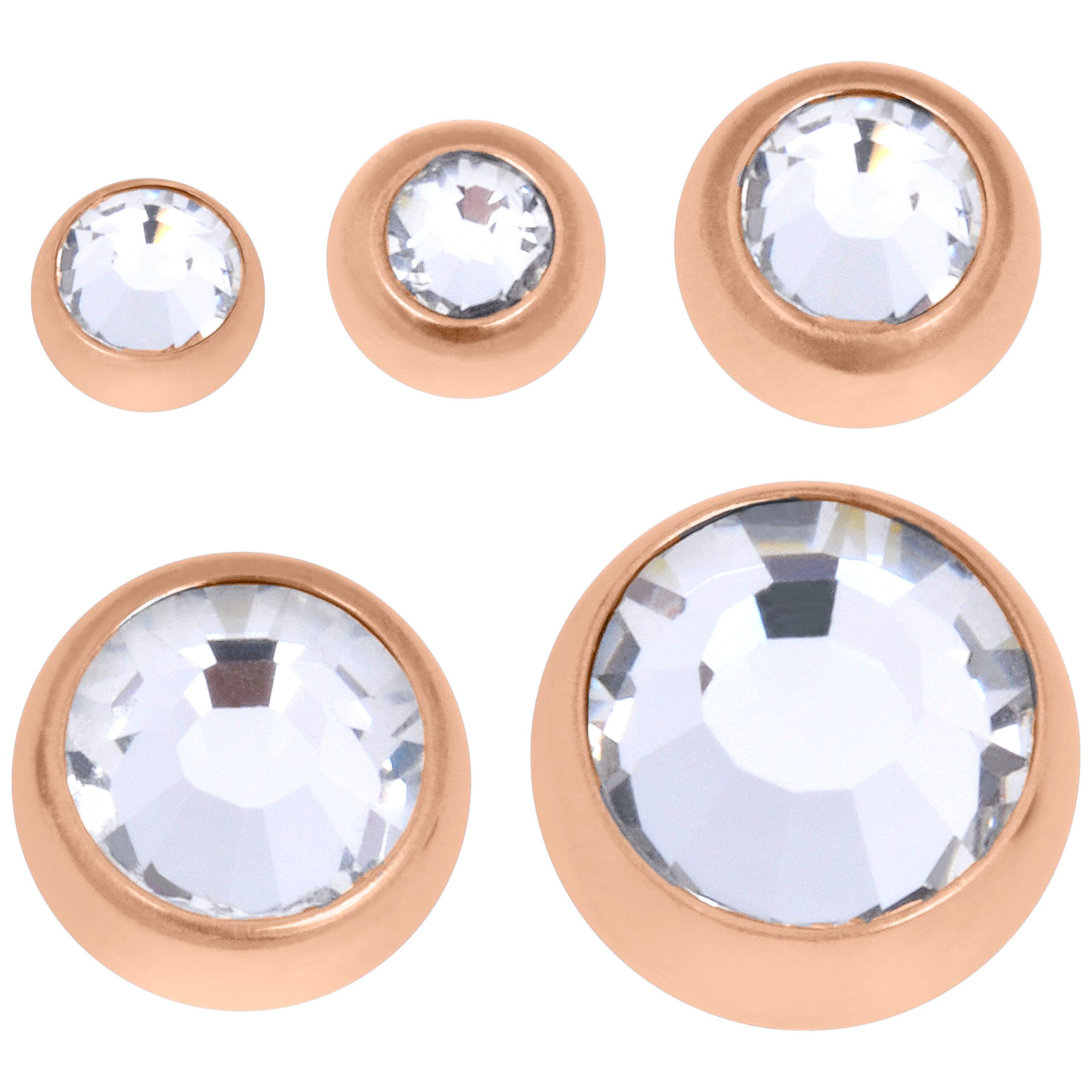 Le sfere filettate internamente della linea Titan Rosegoldline sono disponibili anche con cristallo fine! Le sfere sono disponibili in varie combinazioni di diametro/filo/colore.