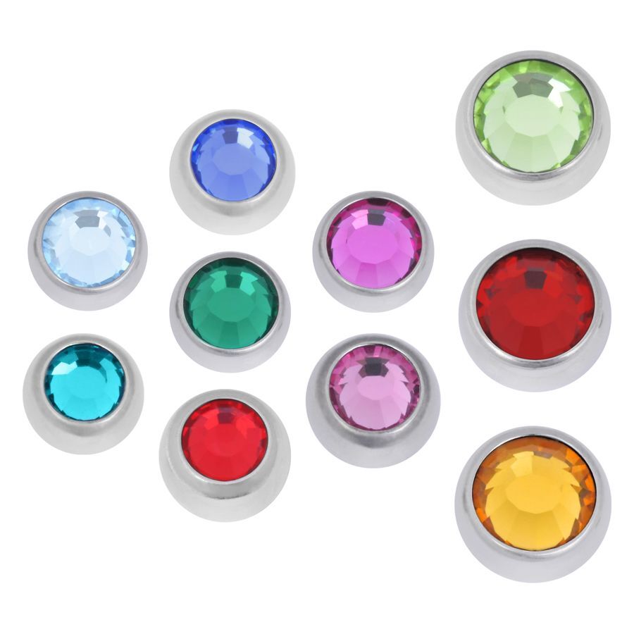 Sfera in Implantanium con pietra brillante, ideale per completare o rinnovare l’aspetto di un piercing.