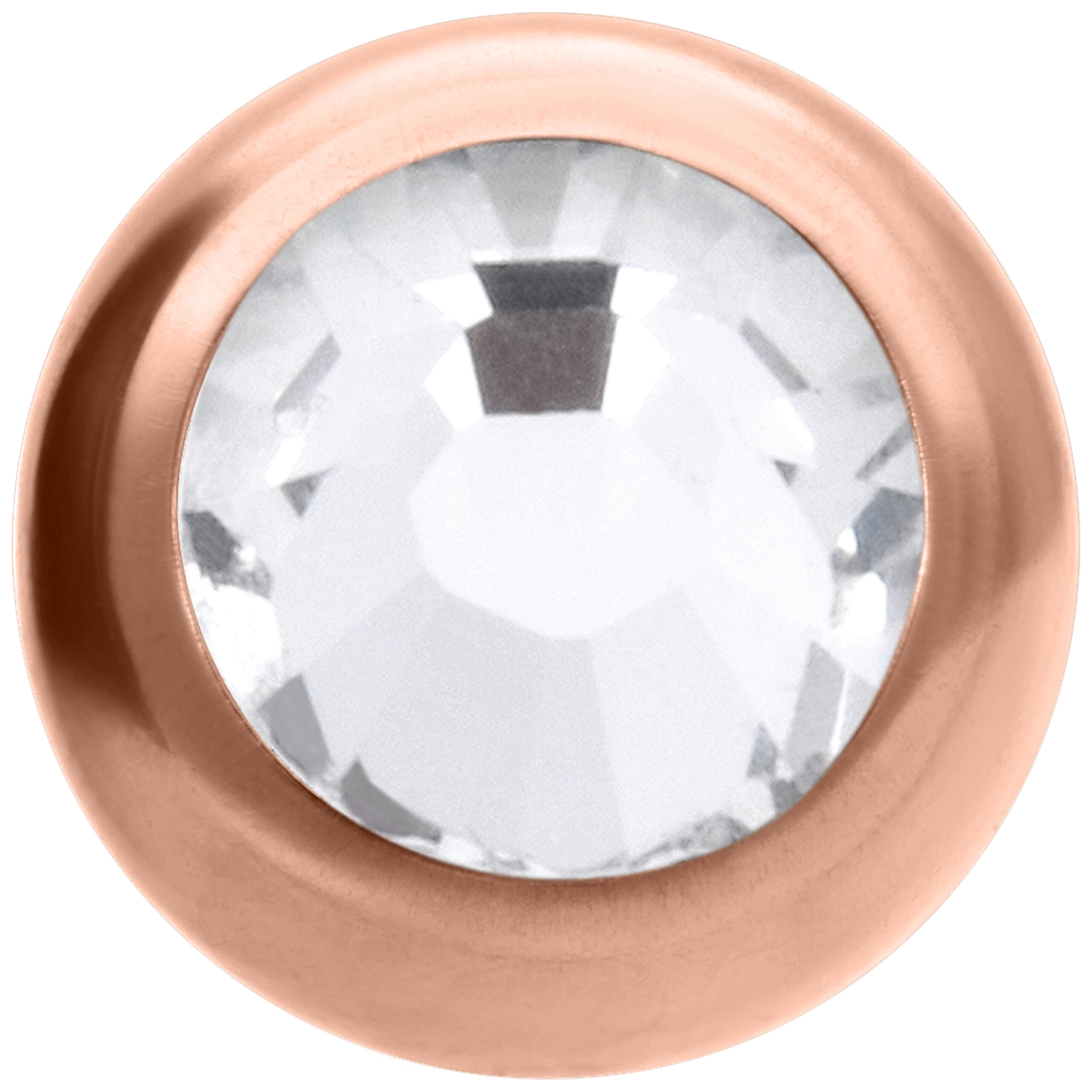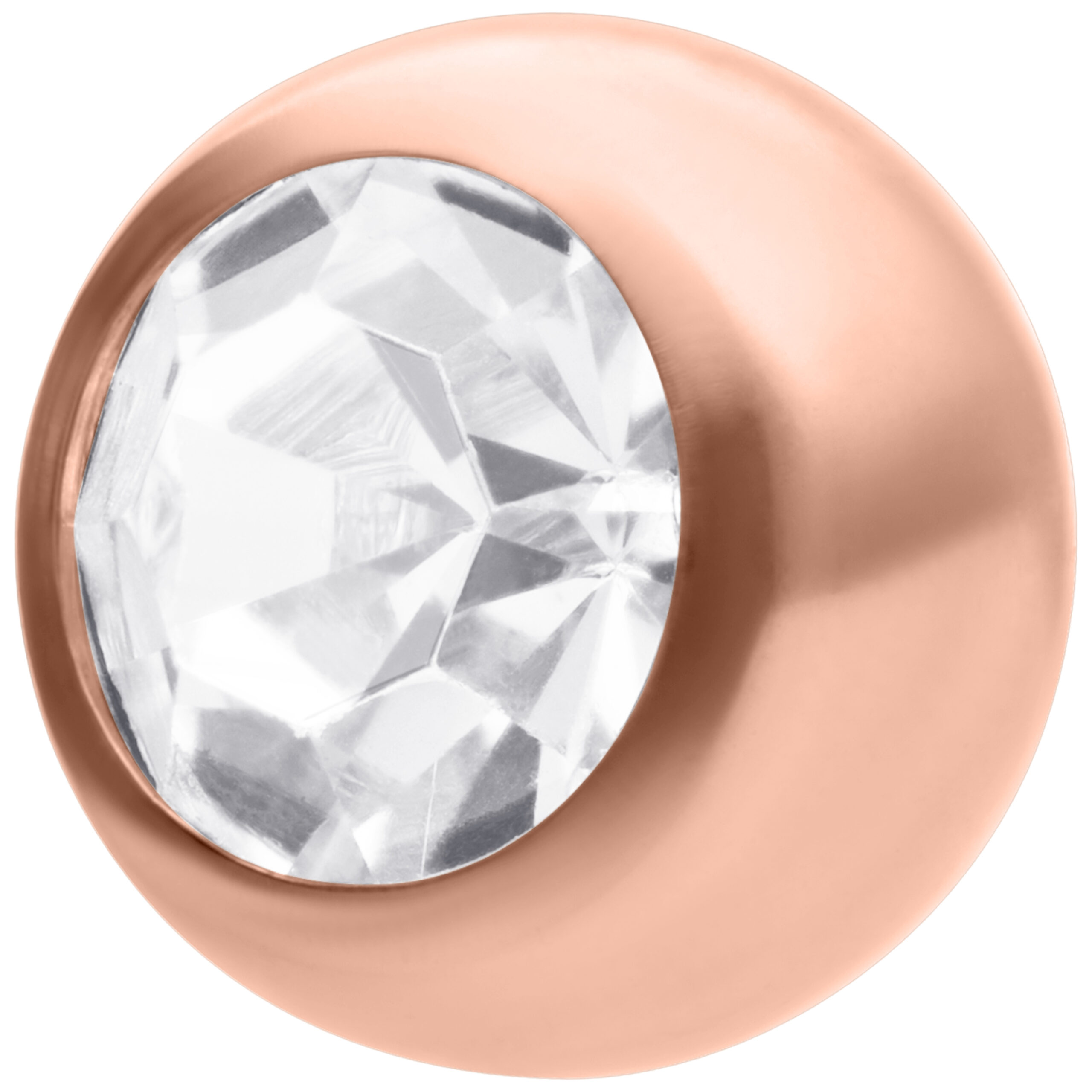 Sfera realizzata in titanio con colorazione oro rosa, ideale per completare o rinnovare l’aspetto di un piercing. Questo gioiello è caratterizzato da una pietra brillante chiara.