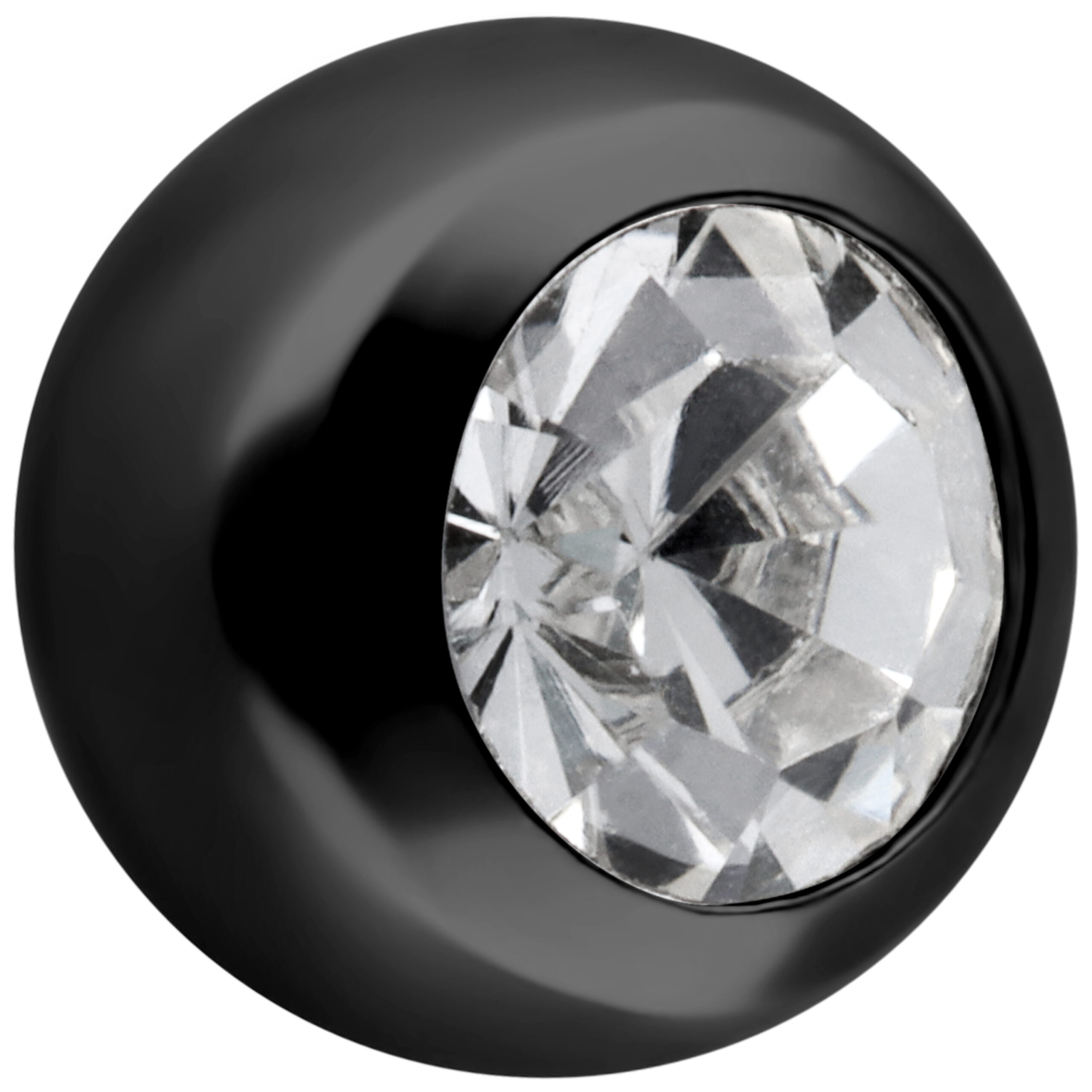 Sfera in acciaio inossidabile di colore nero con particolare pietra brillante bianca, ideale per completare o rinnovare l’aspetto di un piercing.