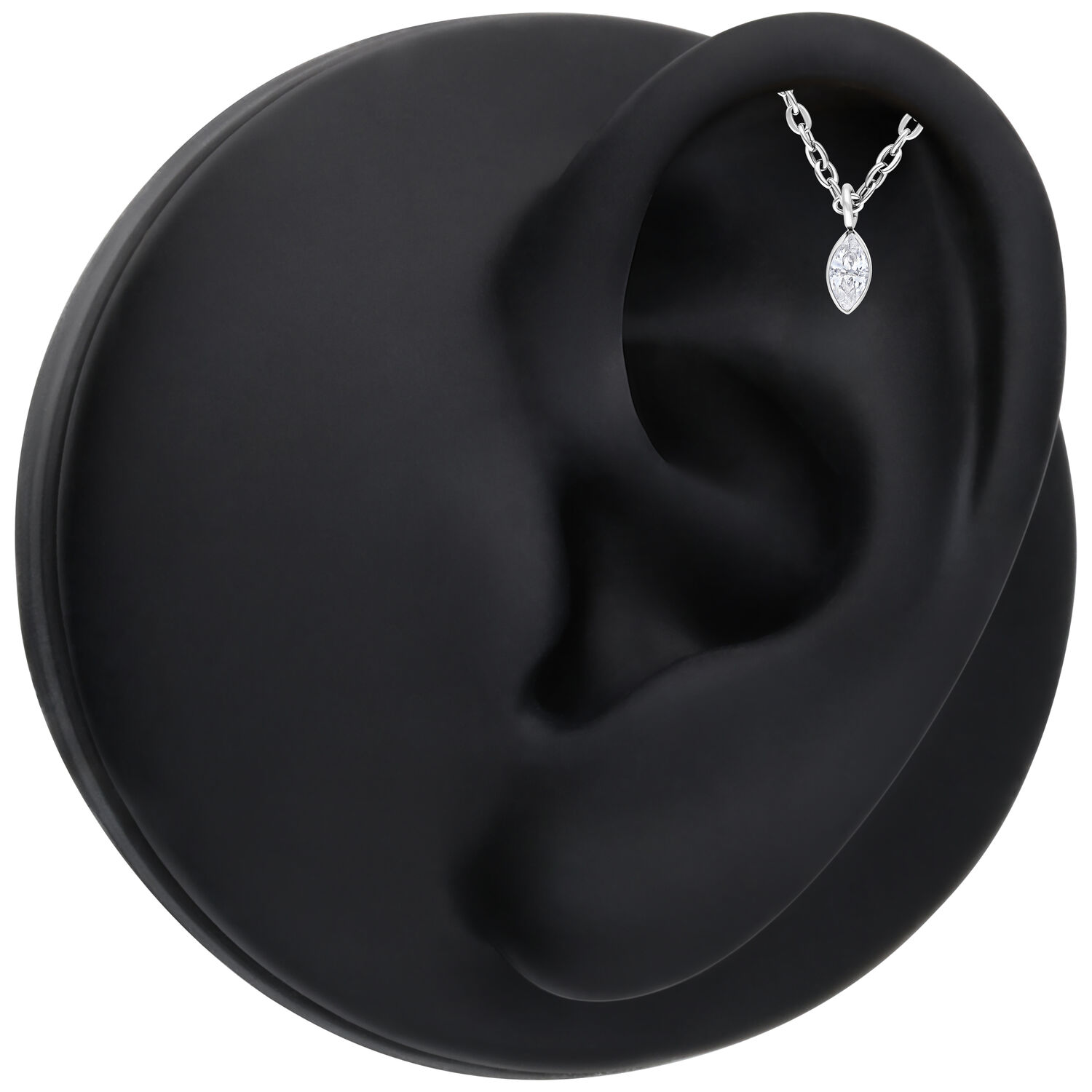 La barretta curva si nasconde perfettamente nella piega dell’orecchio, in modo che sia visibile solo la sottile catenella, conferendo al tuo look un tocco elegante e molto speciale.
