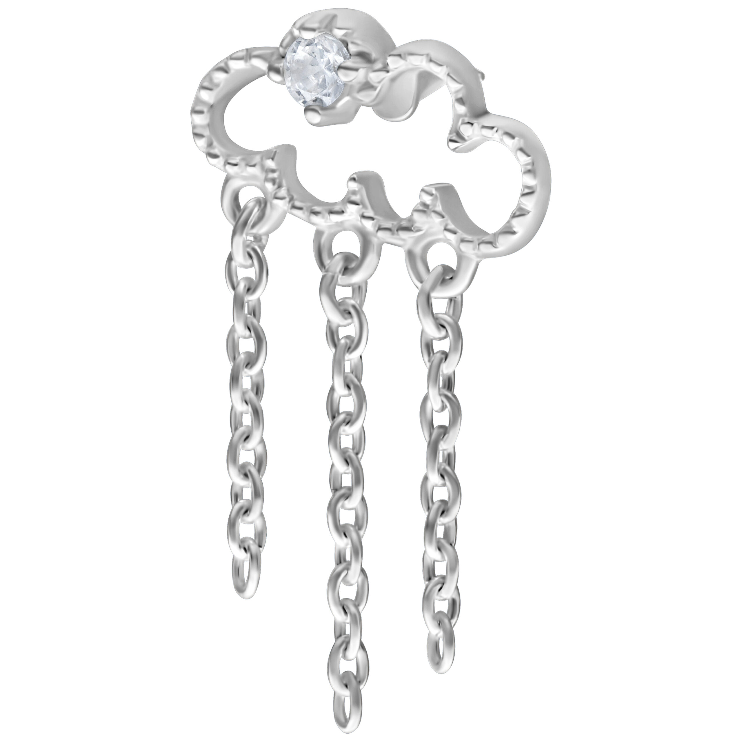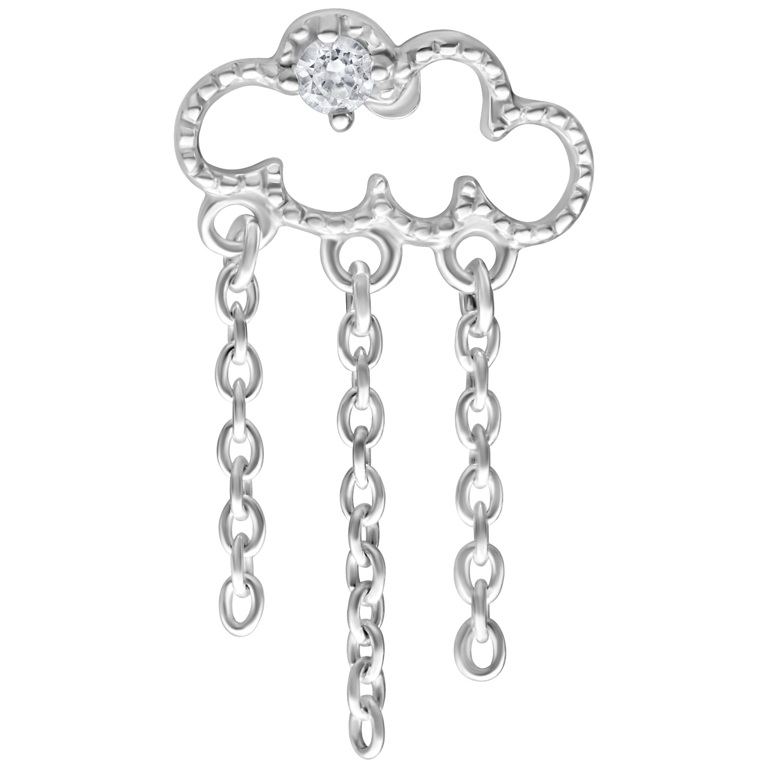 Scopri l’incantevole terminale Push Fit Cloudy che aggiungerà un tocco celestiale al tuo look. Questo splendido gioiello a forma di nuvola è decorato con cristalli scintillanti e fa un figurone con tre catenelle che scendono come una dolce pioggia.