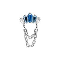 I cristalli in turchese e lavanda sbocciano in una disposizione delicata e catturano la luce a ogni movimento. Due sottili catenine in argento o oro impreziosiscono il design, donando al gioiello un carattere lussuoso e fluido – un dettaglio che cattura subito lo sguardo e conferisce al tuo piercing una profondità senza pari.