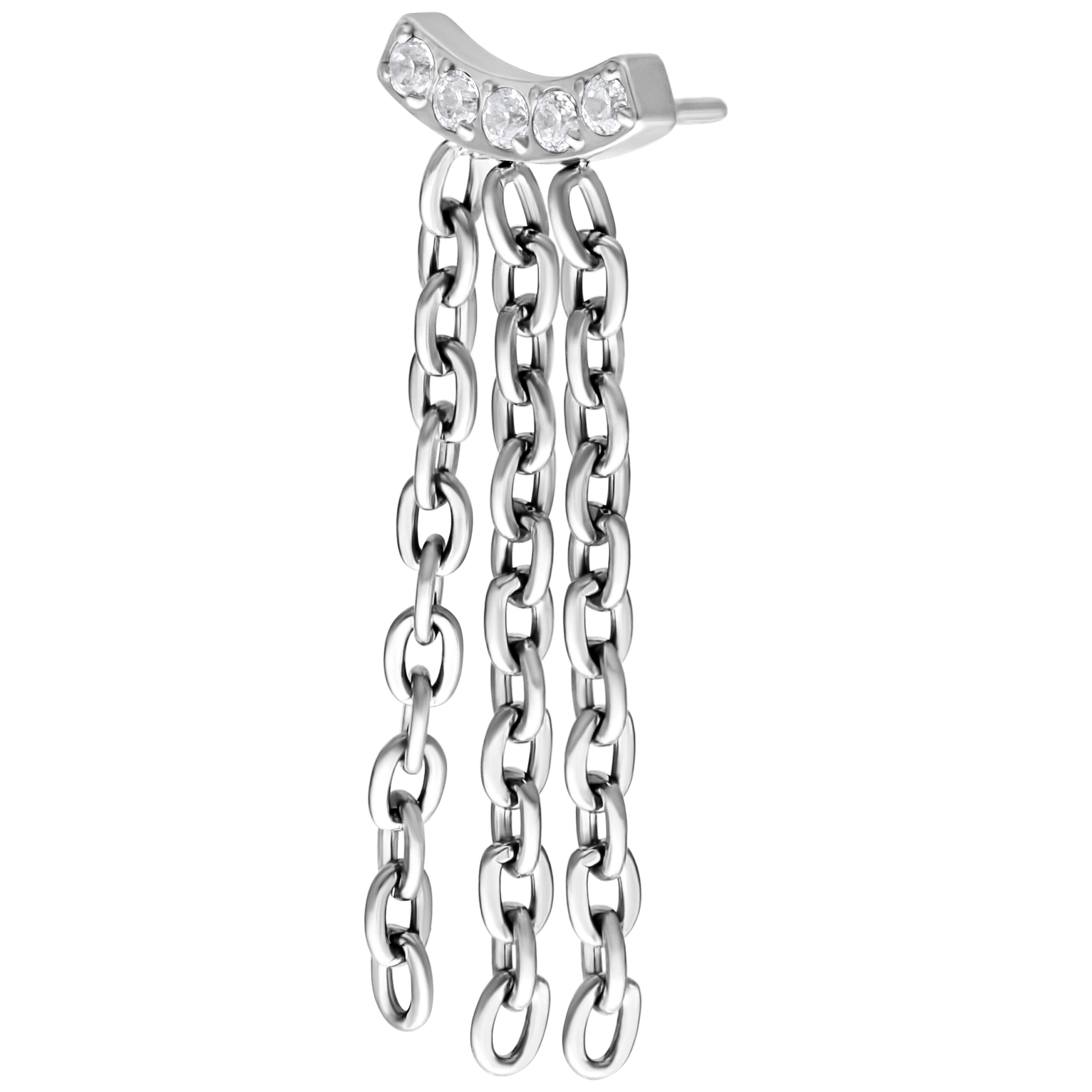 Sei alla ricerca di un tocco di glamour e di attitudine? Il nostro terminale Push Fit Crystal Bar Chain cristallo scintillante e catene pendenti è un pezzo forte che cattura immediatamente l’attenzione. Le catene sottili pendono elegantemente dall’orecchio e conferiscono a questo piercing un tocco tagliente e giocoso. Una perfetta espressione di individualità e stile.