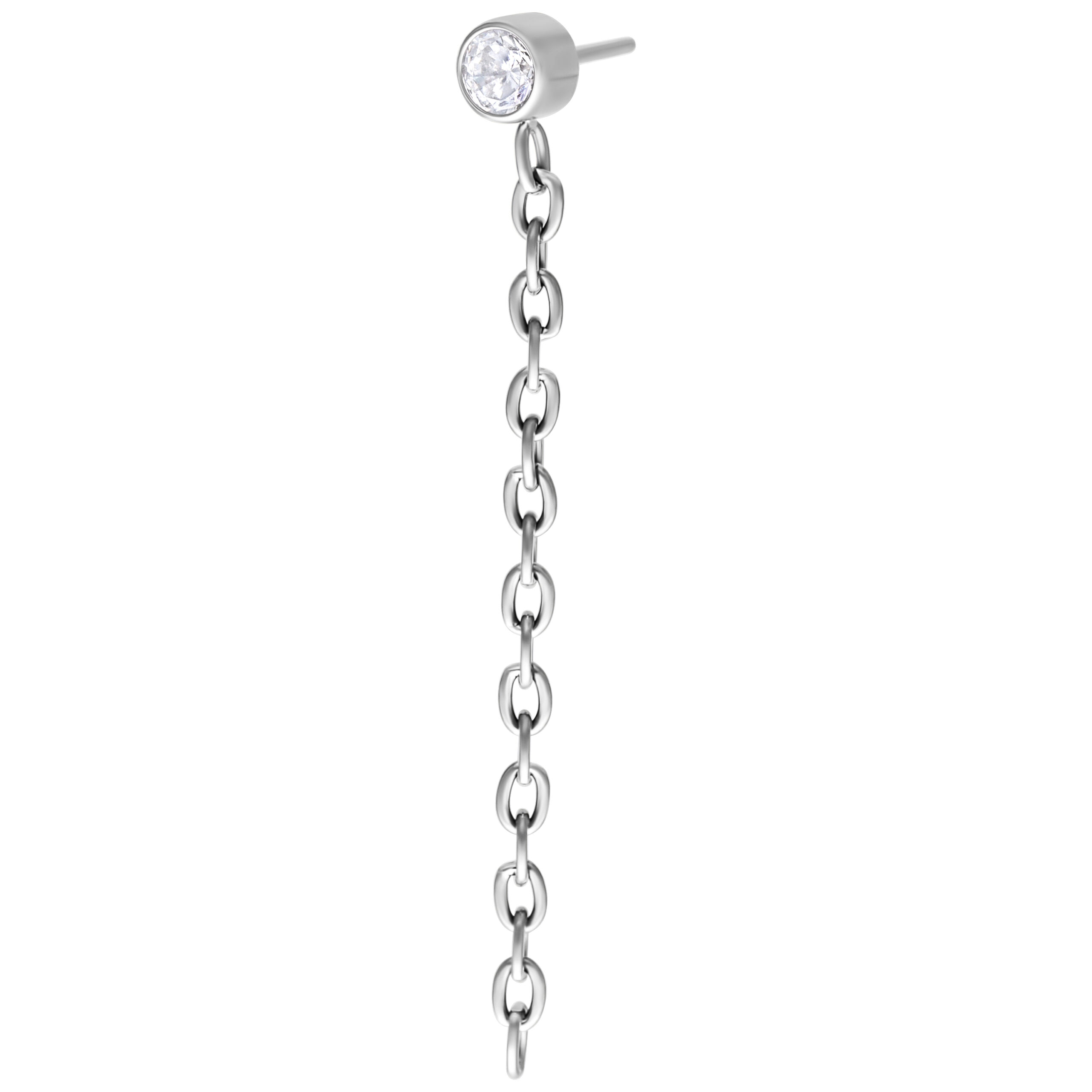 Sei alla ricerca di un tocco di glamour e di attitudine? Il nostro terminale push fit con cristalli scintillanti e catene pendenti è un pezzo forte che cattura immediatamente l’attenzione. Le catene sottili pendono elegantemente dall’orecchio e conferiscono a questo piercing un tocco tagliente e giocoso. Una perfetta espressione di individualità e stile.
