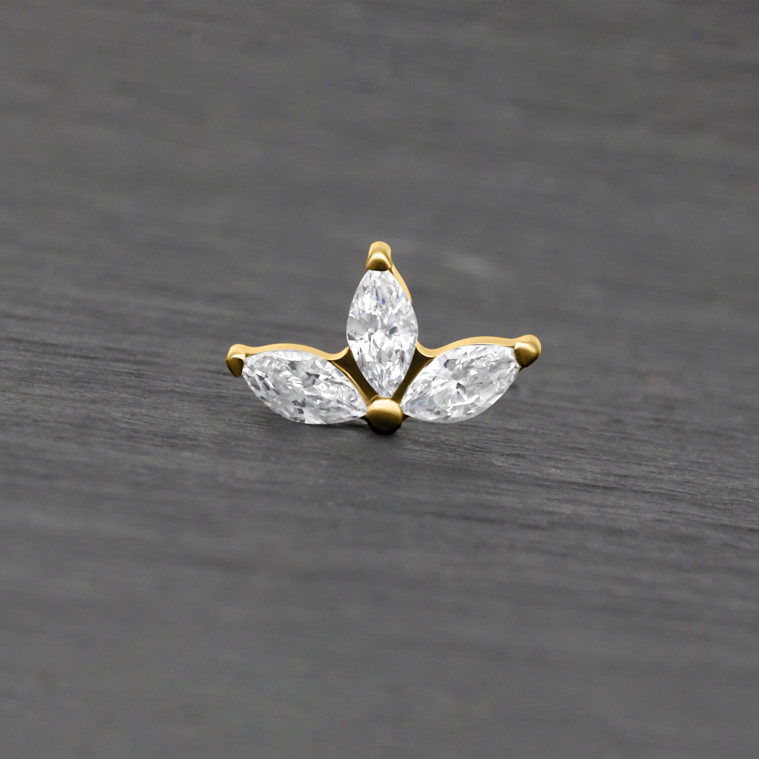 Aggiungi un tocco speciale al tuo piercing con il terminale Crystal Lotus. Tre cristalli ovali di alta qualità formano la forma di un loto, catturando la luce in modo davvero incantevole. Il loto simboleggia la purezza, l’illuminazione e la trasformazione, e questo attacco porta questo senso di bellezza e armonia al tuo piercing. I cristalli sottili creano un accento scintillante, aggiungendo quel qualcosa in più al tuo look.