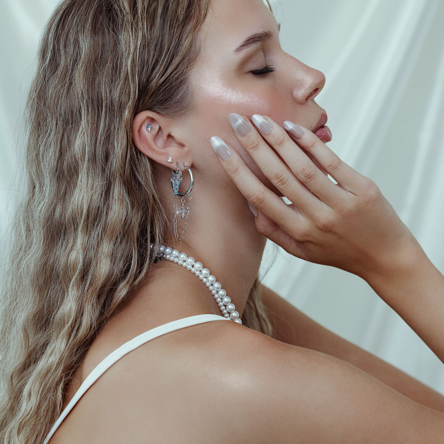 I cristalli scintillanti in turchese e lavanda ricordano preziosi gioielli delle profondità marine, catturando la luce a ogni movimento e facendoti brillare. In combinazione con l’eleganza dell’argento o il lusso dell’oro, nasce un design che cattura subito lo sguardo e dona al tuo look un’aura irresistibile.