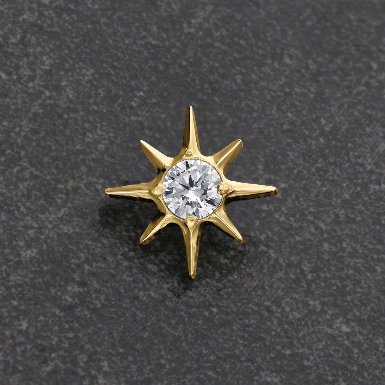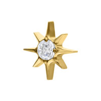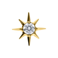 Elegante terminale a forma di una stella con un cristallo luminoso al centro. Il cristallo cattura la luce in modo splendido, creando un effetto brillante che rende il piercing un vero e proprio richiamo visivo. Il meccanismo Push Fit consente un facile fissaggio, assicurando che rimanga saldamente in posizione nel piercing.