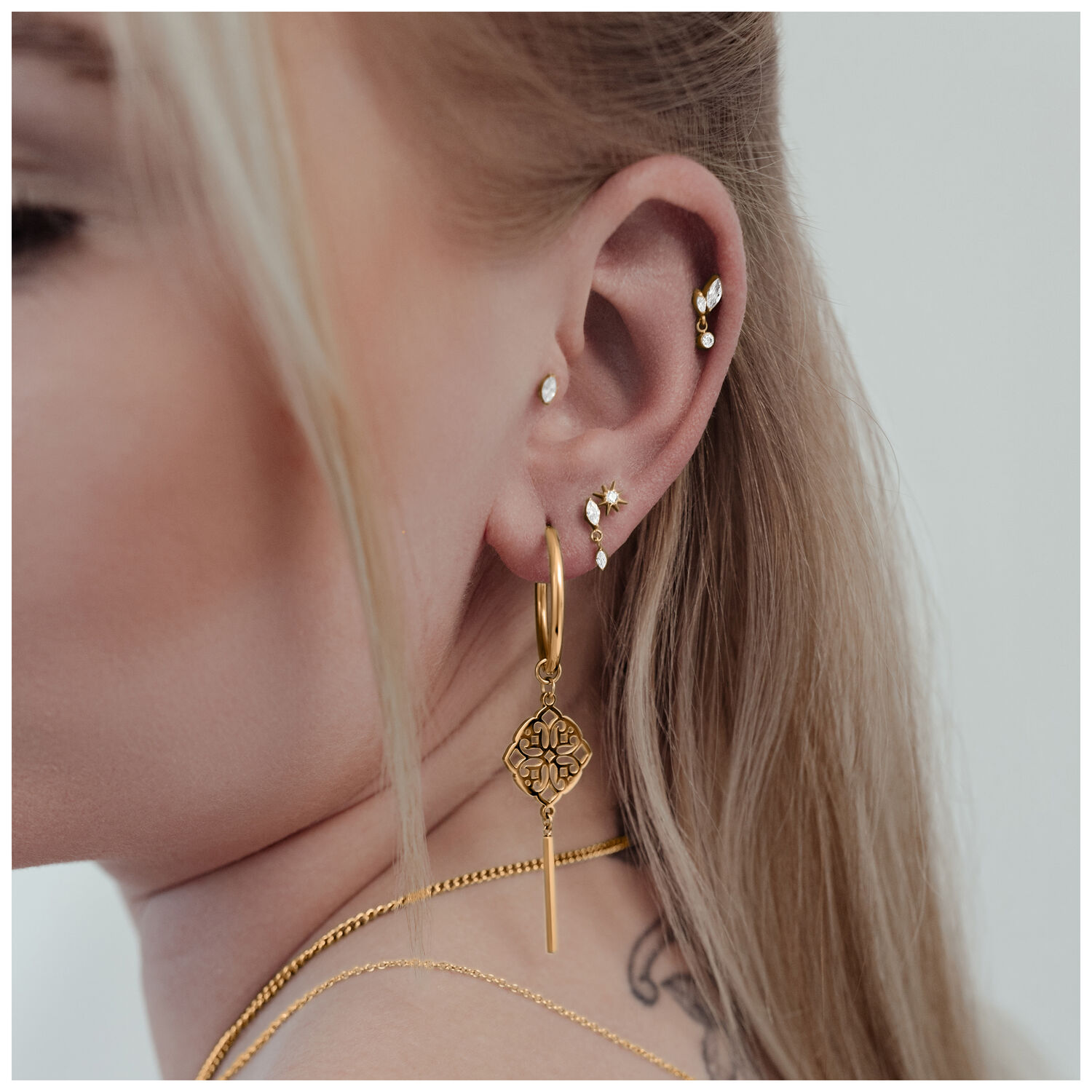 Tipologia di piercing: Conch, Flat, Helix, Lobe, Tragus, Nostril, Labret, Medusa