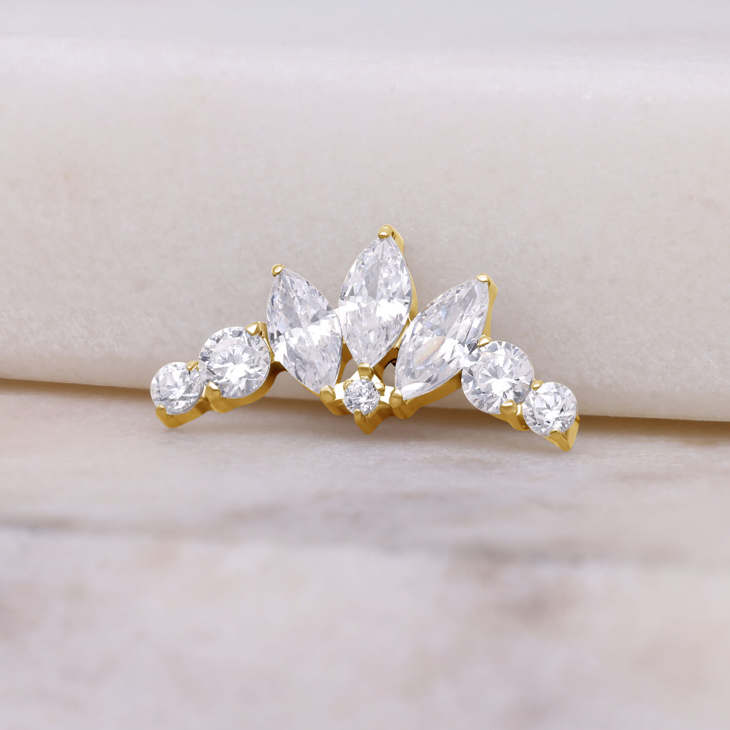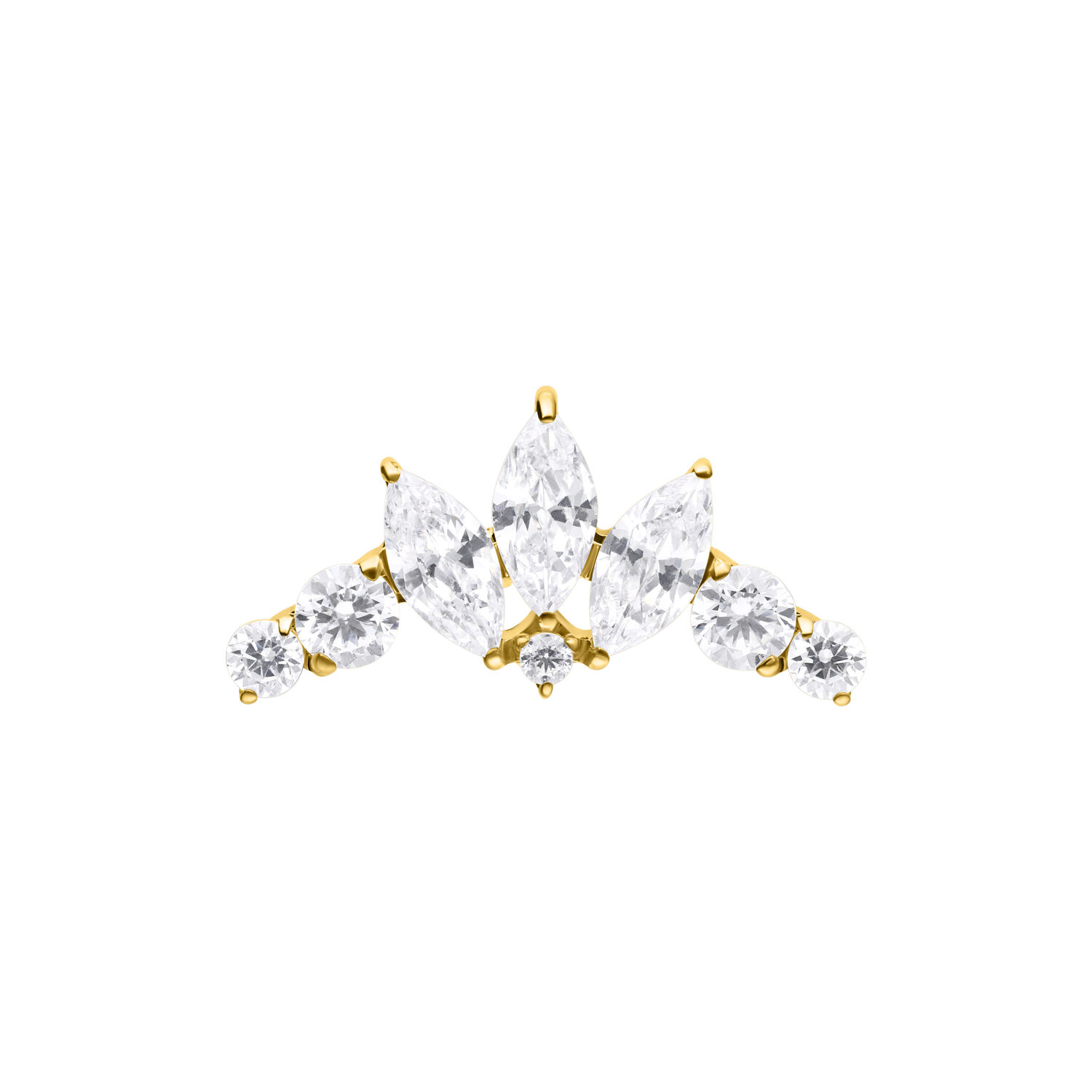 Il terminale Crystal Tiara Bow presenta un delicato design a fiocco impreziosito da cristalli scintillanti, che creano un look raffinato che ricorda una sottile tiara. I cristalli incastonati con precisione aggiungono una lucentezza pulita ed elegante senza sovrastare il design.