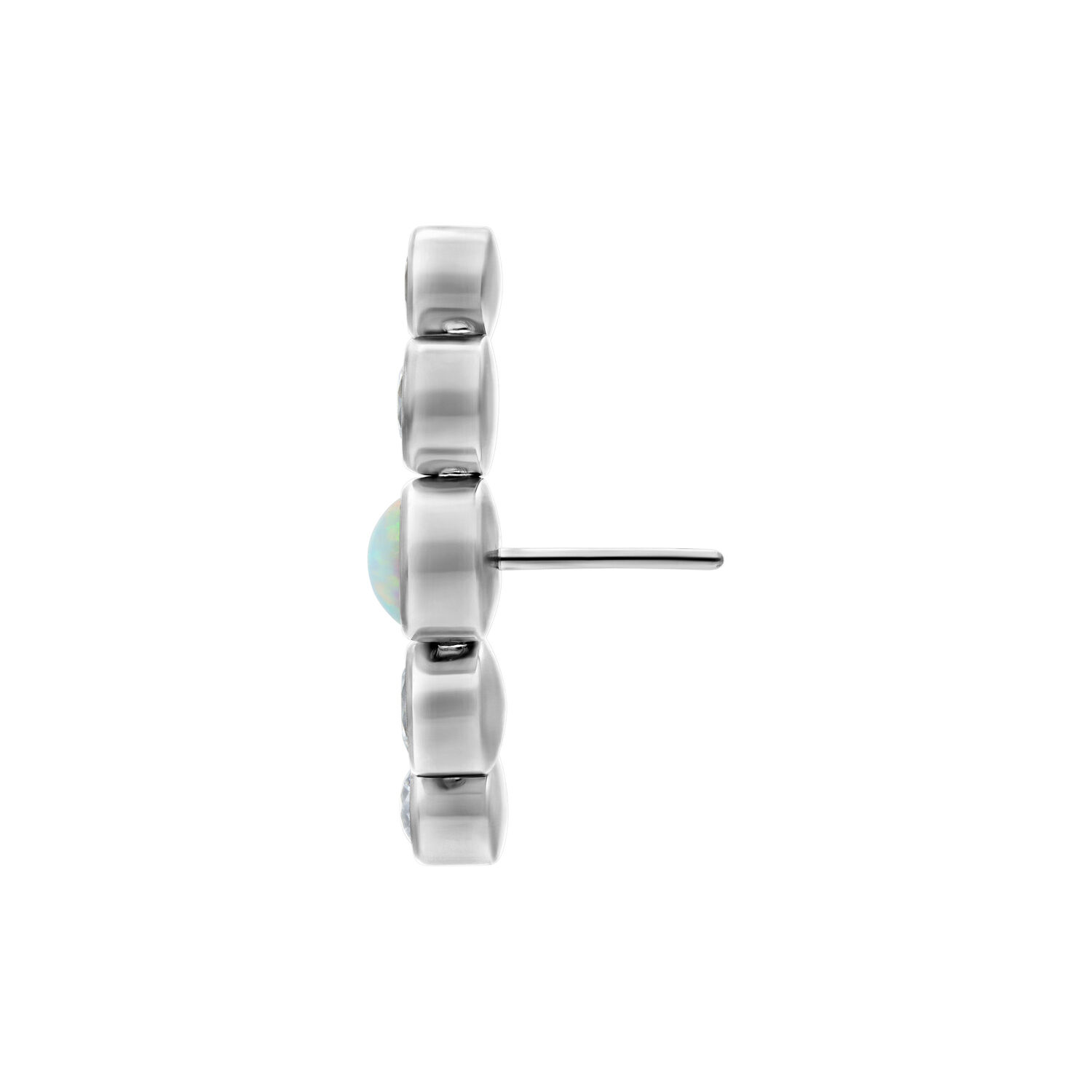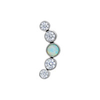 La delicata palette colori dell’opale e la lucentezza dei cristalli rendono il terminale Push Fit Curved Opal un vero e proprio richiamo visivo. Questo splendido attacco contiene 4 cristalli e un opale e si adatta delicatamente alla linea naturale dell’orecchio.