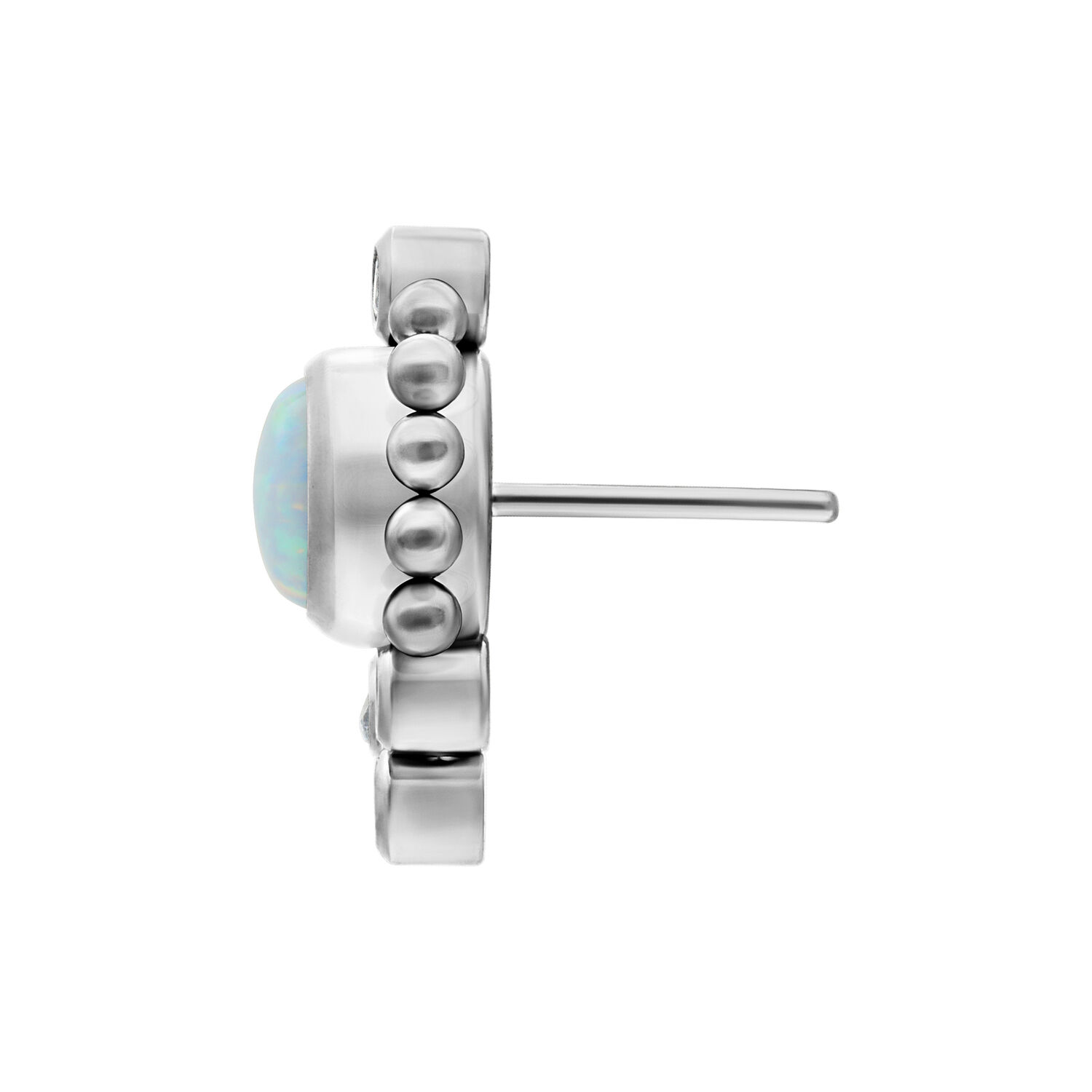 Il terminale Push Fit Opale Oriental affascina per la sua varietà di colori e la sua morbida lucentezza. Ogni opale è unico e conferisce al vostro piercing un tocco molto personale. Questo attacco sapientemente progettato è un omaggio alla bellezza e alla magia senza tempo dell’Estremo Oriente.