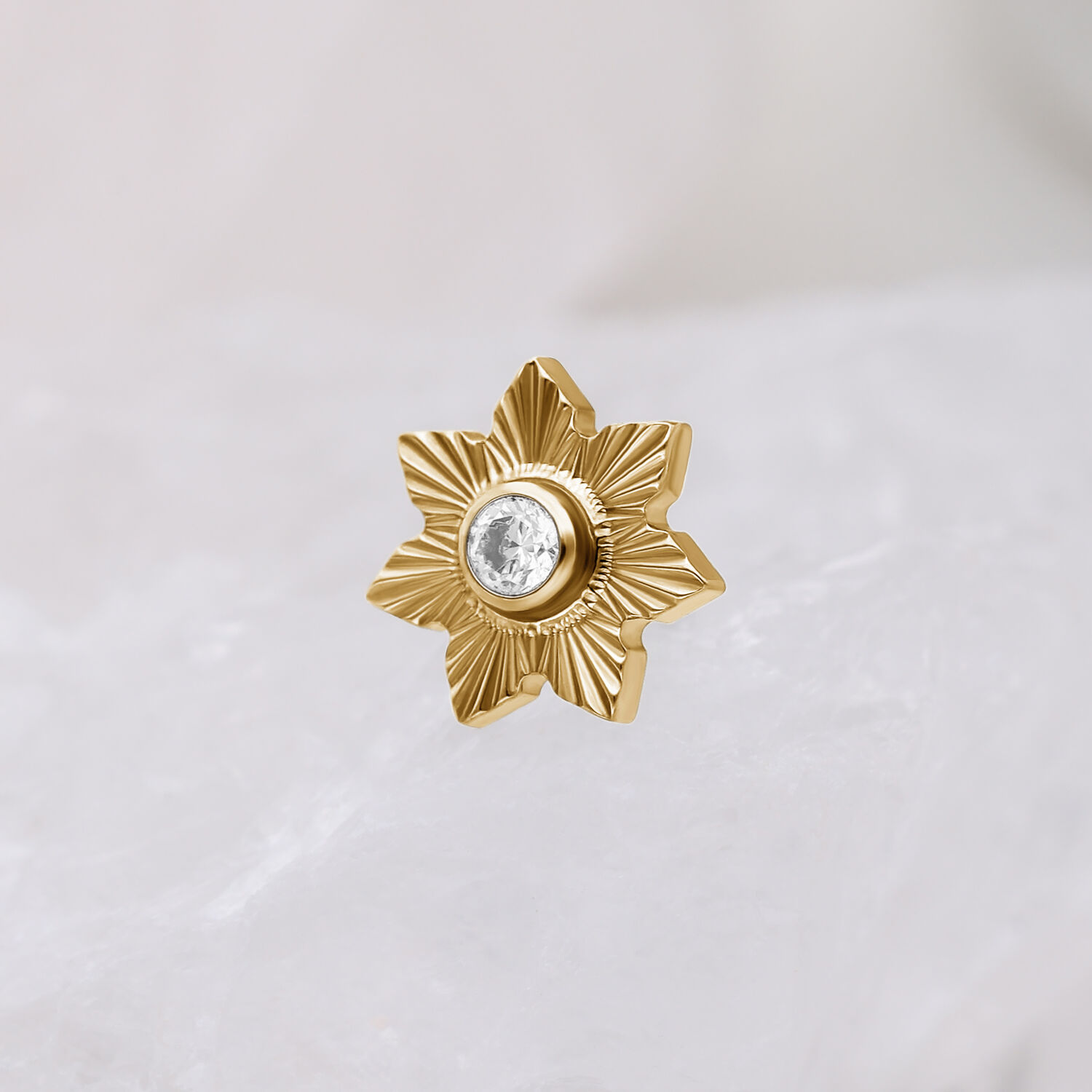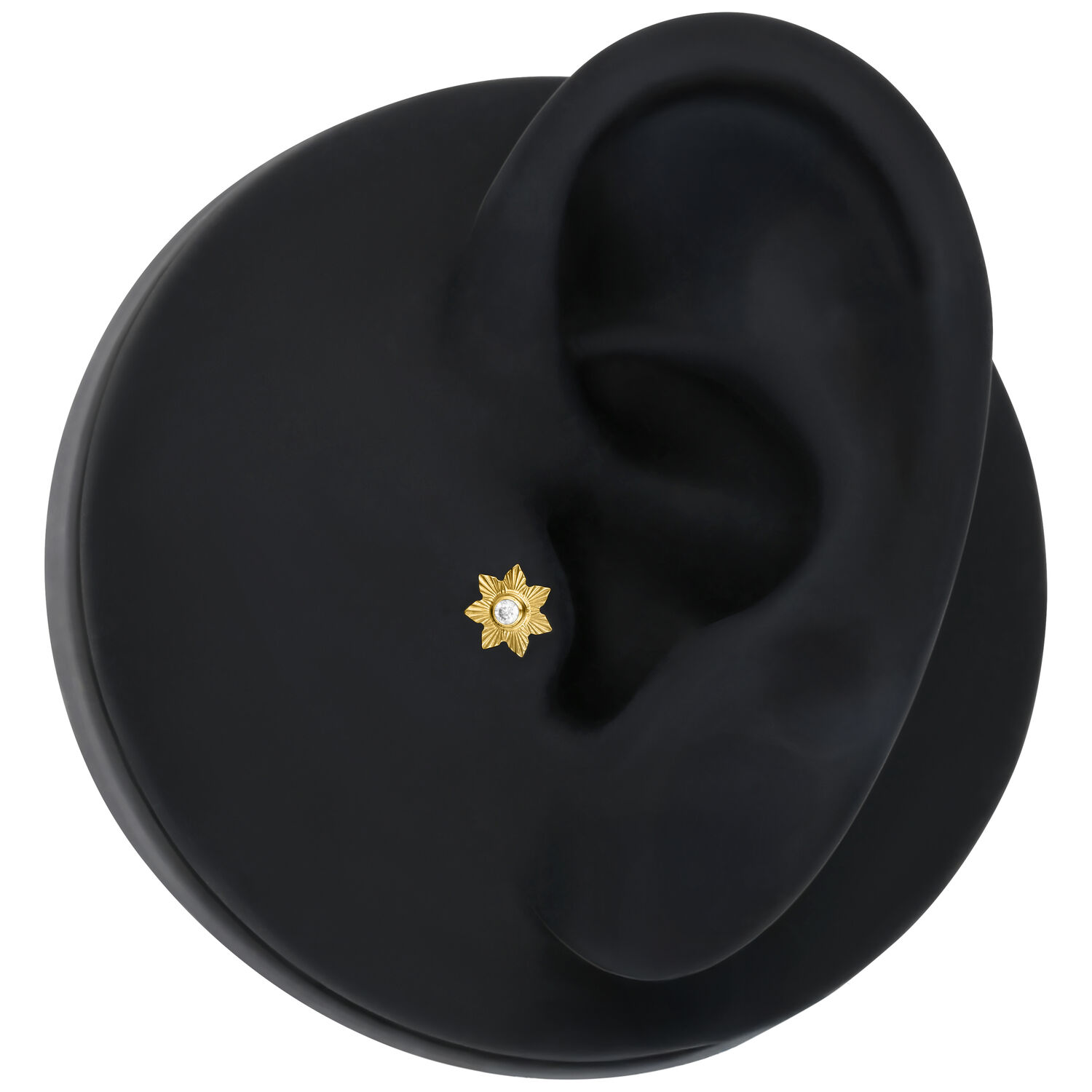 Con il suo meccanismo a incastro facile e sicuro, questo accessorio è perfetto per piercing all’elice, al lobo, alla conca e alla medusa. Un pezzo intramontabile ispirato all’inverno che aggiunge un elegante tocco floreale alla tua collezione di gioielli per tutto l’anno.