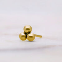 Il terminale Push Fit Trinity presenta un design pulito con tre elementi disposti armoniosamente. La sua forma equilibrata crea un look moderno e minimalista che si abbina facilmente ad altri gioielli.