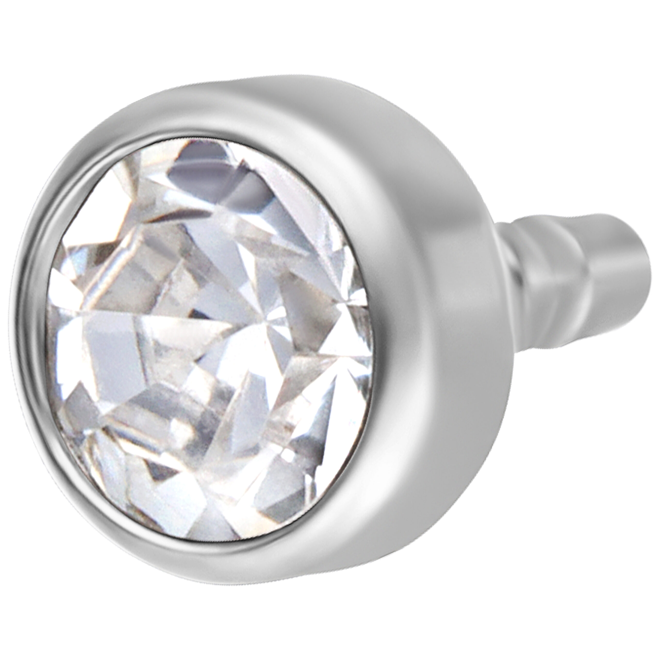 Questo articolo è realizzato in titanio con colorazione naturale e presenta una grande pietra brillante chiara.