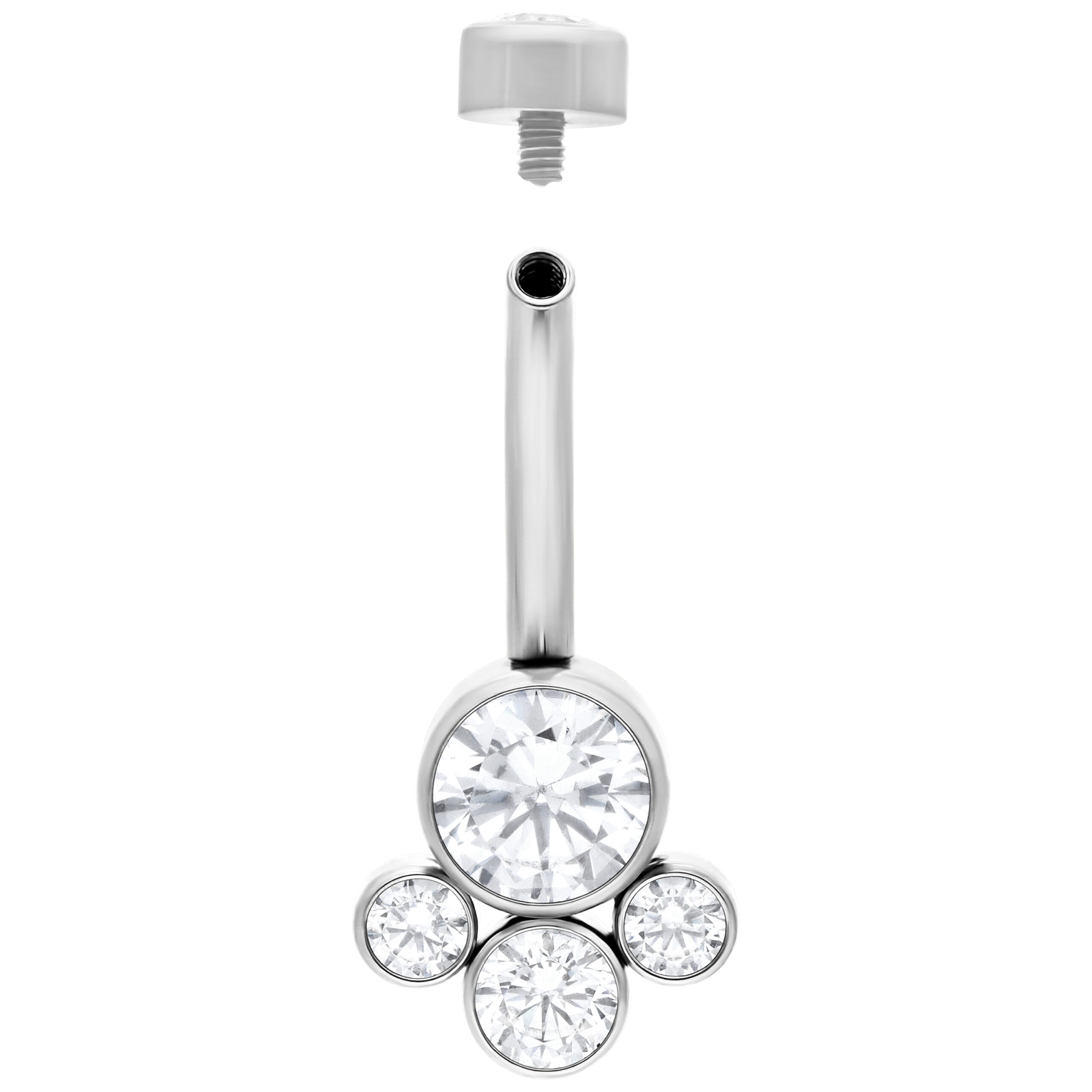 Lo ottieni in titanio color argento con pietre preziose cristalline. La barretta è filettata internamente, il che rende particolarmente facile cambiare i gioielli senza danneggiare la pelle.