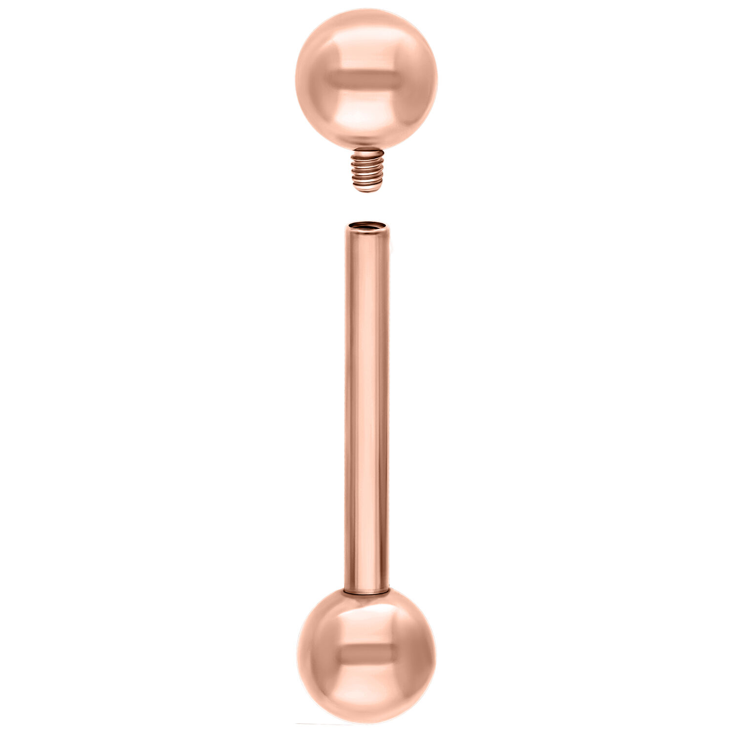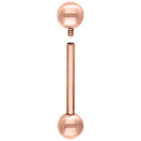 Il micro barbell di alta qualità della Titan Rosegoldline è dotato di sfere svitabili ad entrambe le estremità. Il suo spessore di 1,2 mm lo rende ideale per il primo utilizzo. Le sfere sono disponibili nei diametri di 3,0 e 4,0 mm. Possono essere avvitate sulle filettature esterne dei nostri bilancieri a filettatura esterna. Le sfere alle due estremità non solo garantiscono una buona presa, ma creano anche un look speciale.