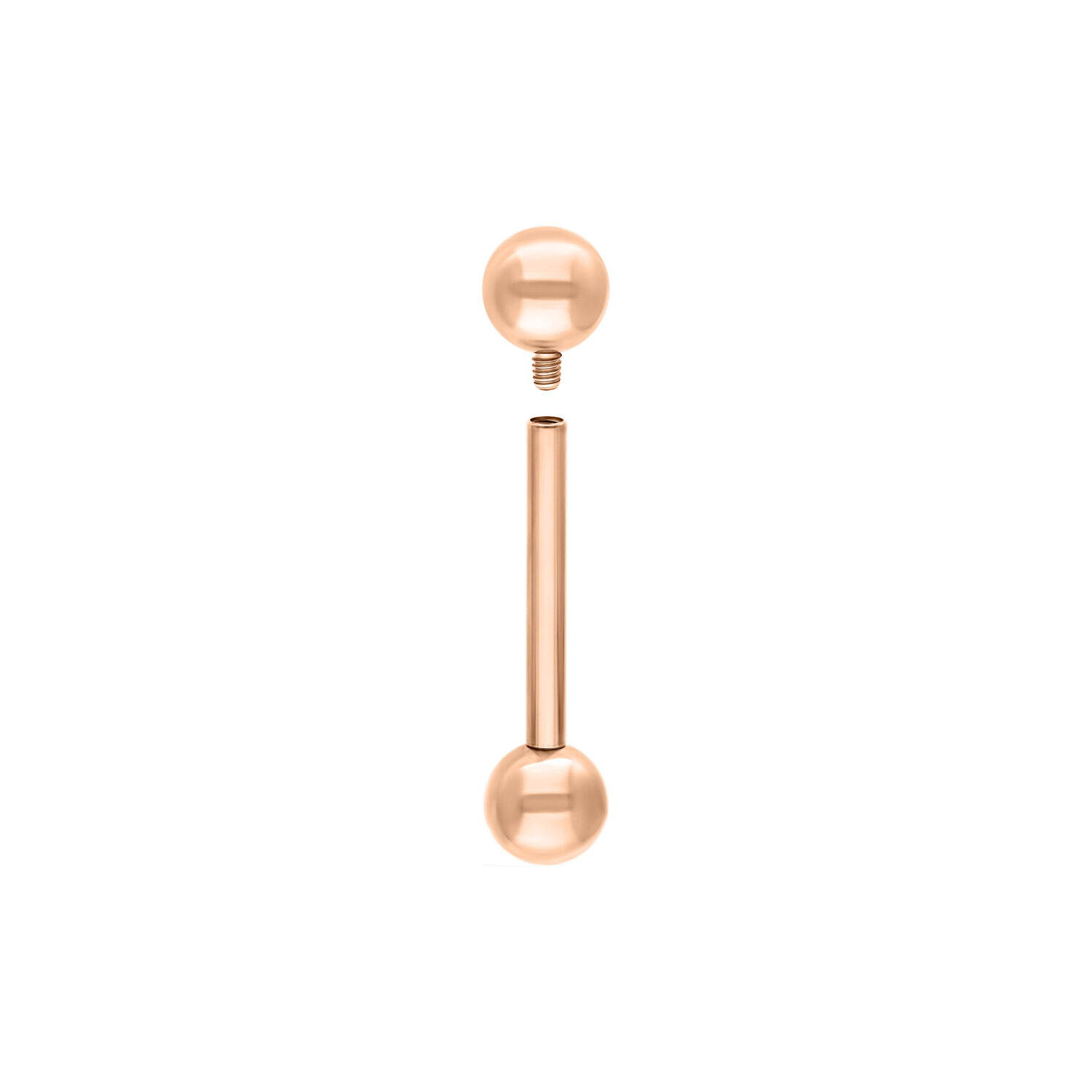 I barbell di alta qualità della linea Titan Rosegoldline sono dotati di sfere svitabili a entrambe le estremità (un bilanciere è quindi composto da una barra e due sfere). Per inciso, tutte le filettature delle nostre collezioni di gioielli sono standardizzate, in modo da poter combinare tra loro anelli, sfere, barrette e terminali!