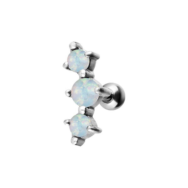 Barbell orecchio 3 pietre opale in acciaio