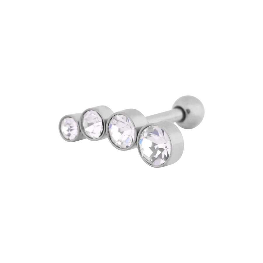 Barbell Orecchio 4 Cristalli Acciaio Destra