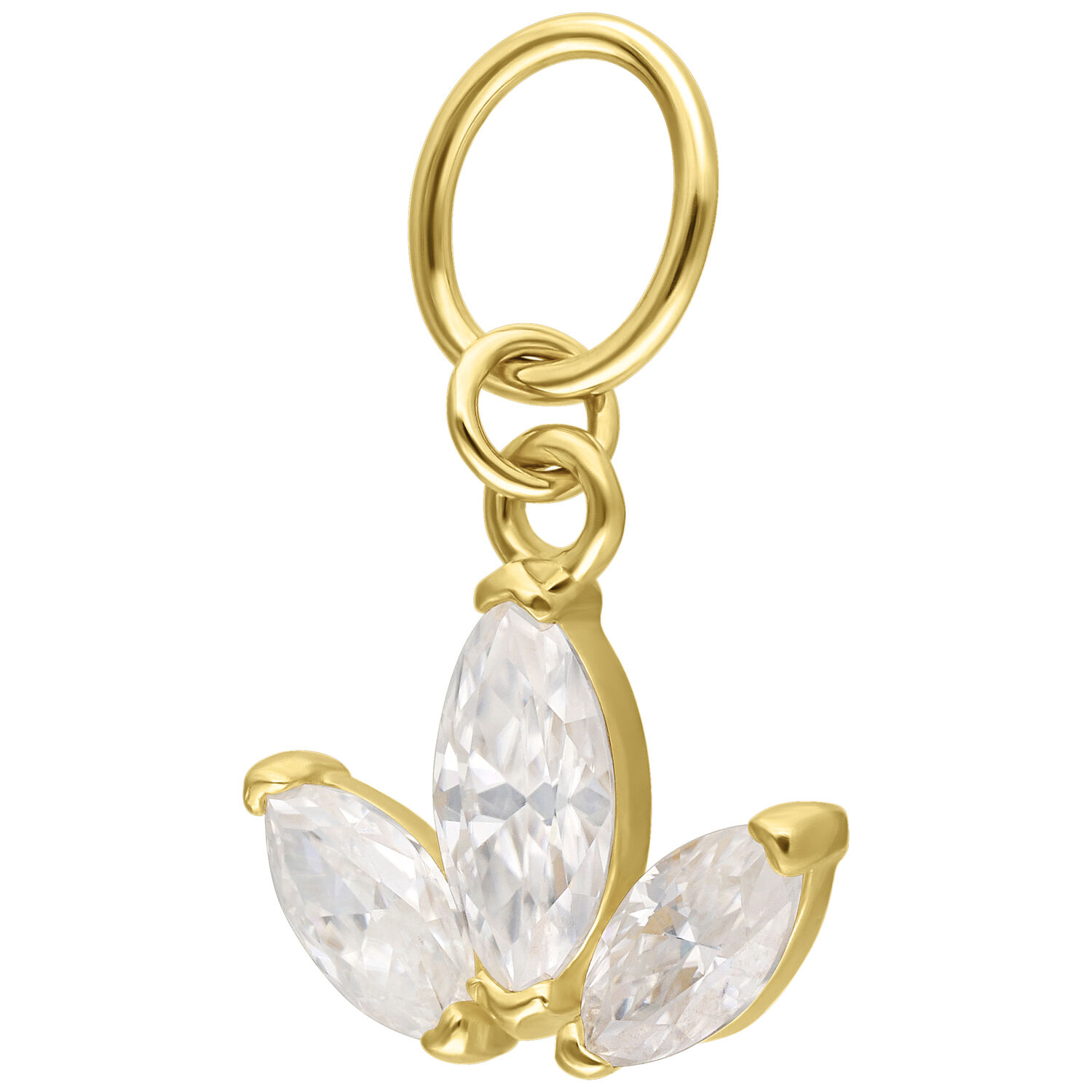 Realizzato in pregiato oro giallo 18 carati (750) lucidato, questo ciondolo piercing affascina con il suo delicato design a forma di fiore di loto, simbolo di purezza, rinnovamento e forza interiore.