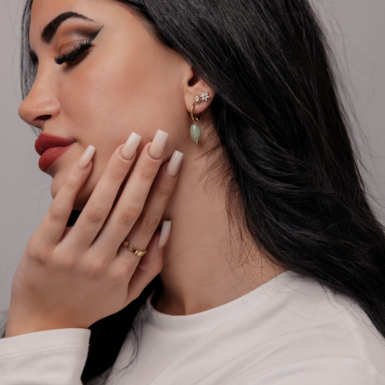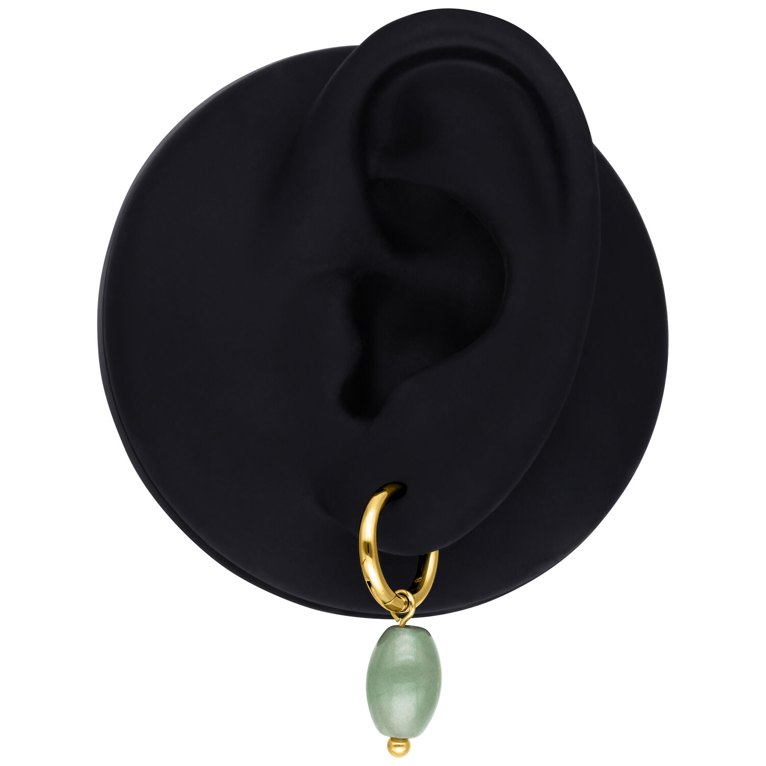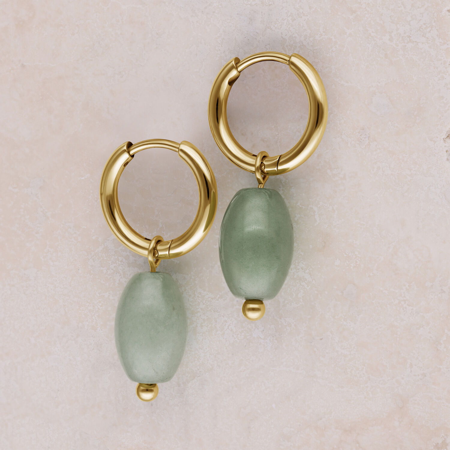 I Mini Hoops in Avventurina Verde combinano un design intramontabile con un’estetica boho fresca e moderna. La pietra preziosa avventurina verde lucidata, modellata in una morbida goccia, aggiunge un tocco di colore naturale e una sensazione di leggerezza e vivacità. Ogni paio è unico grazie al motivo individuale della pietra naturale.