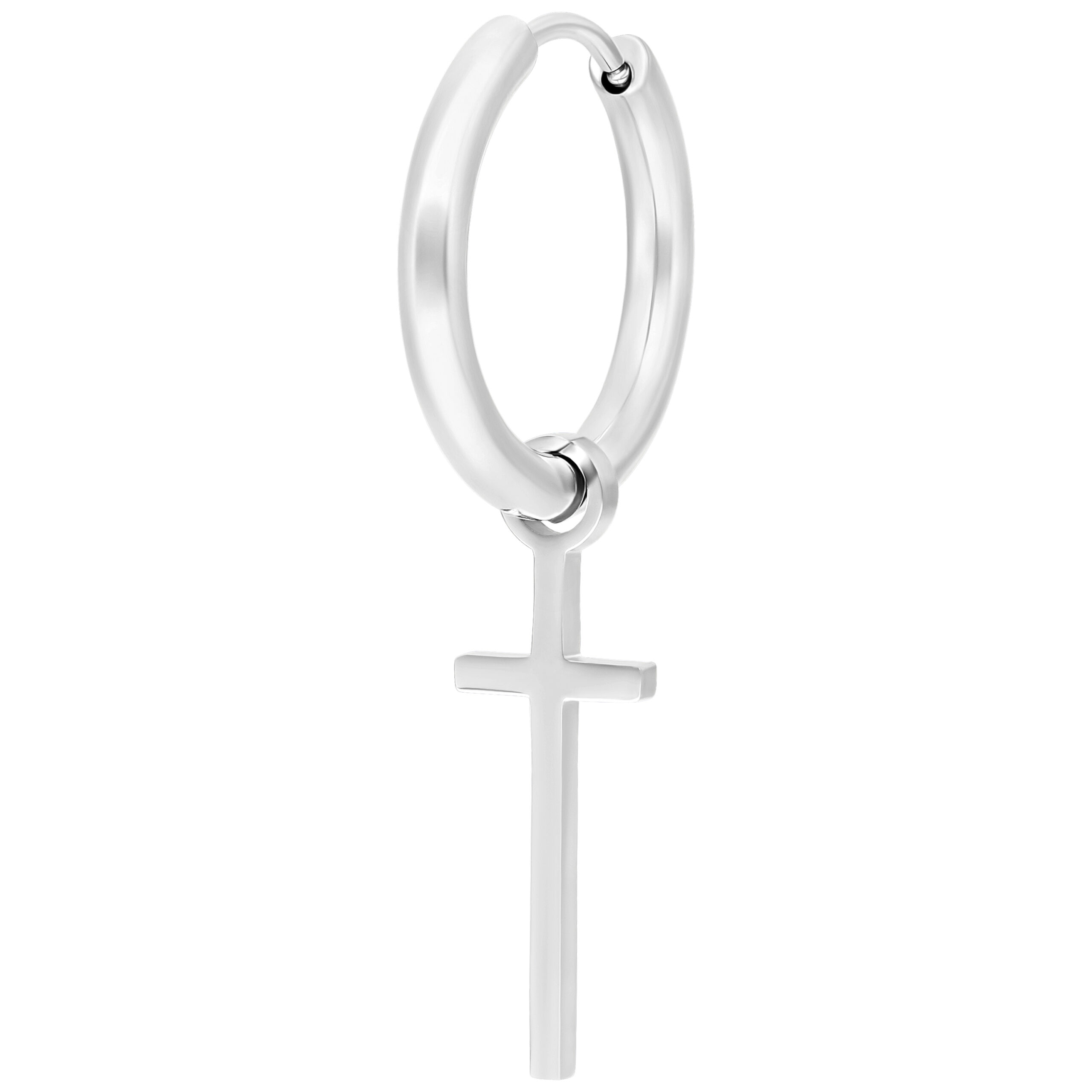 Orecchini realizzati in acciaio con colorazione naturale. Il gioiello presenta un pendente a forma di croce su ciascun orecchino. Indossali come classici orecchini, oppure aggiungili come accessorio ad un orecchino ad anello!