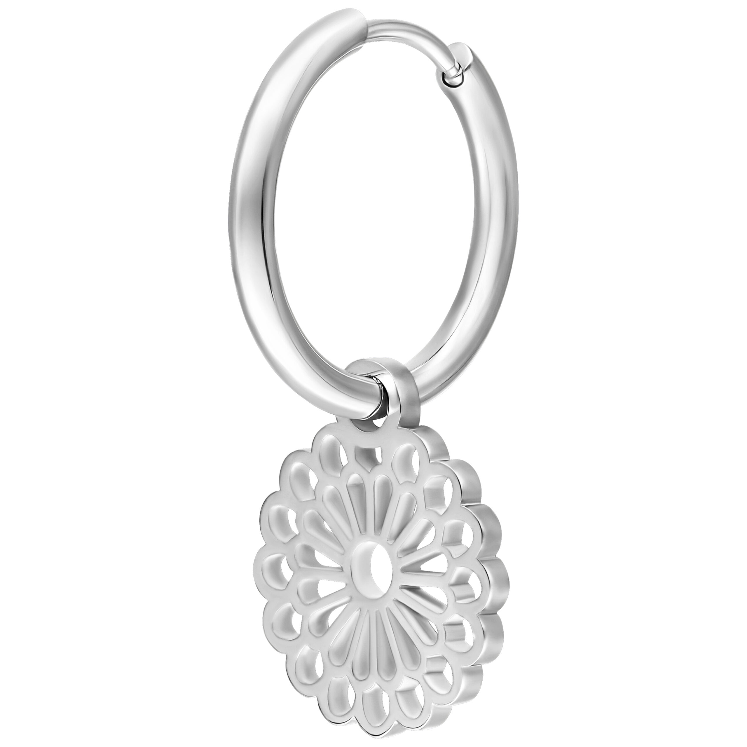 Orecchini Mandala, realizzati in acciaio con colorazione naturale.