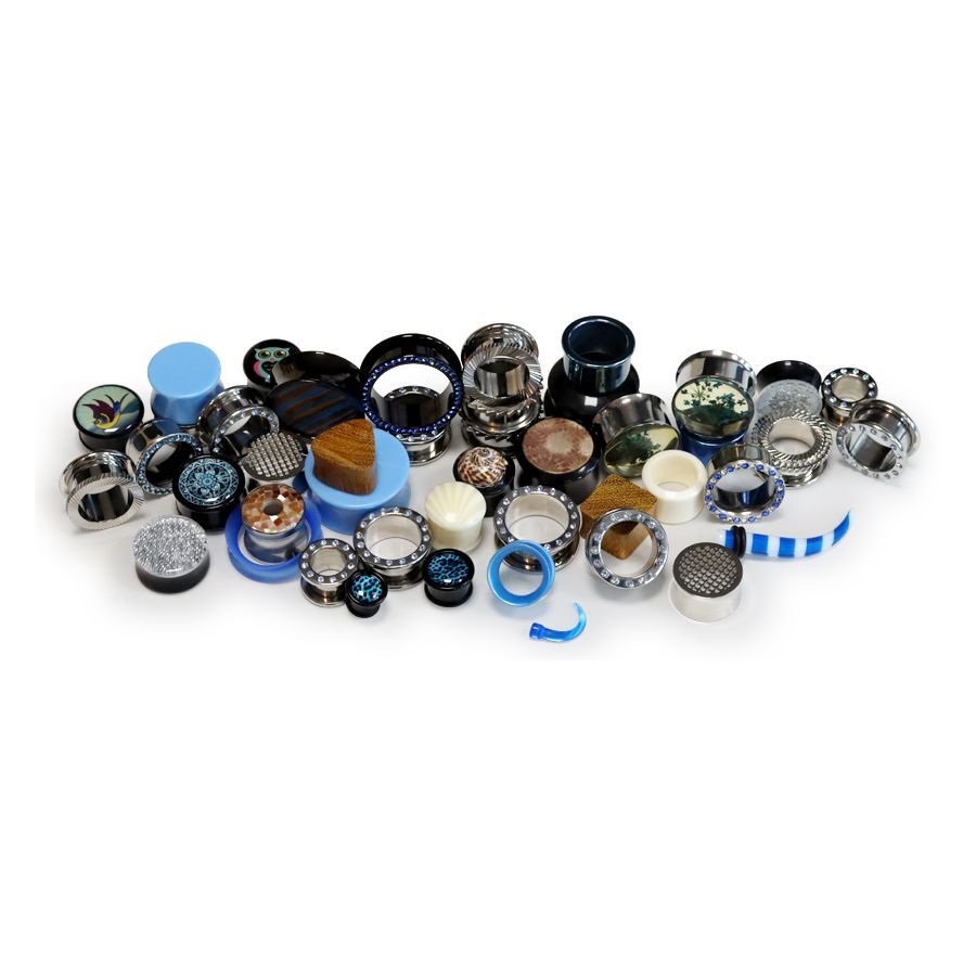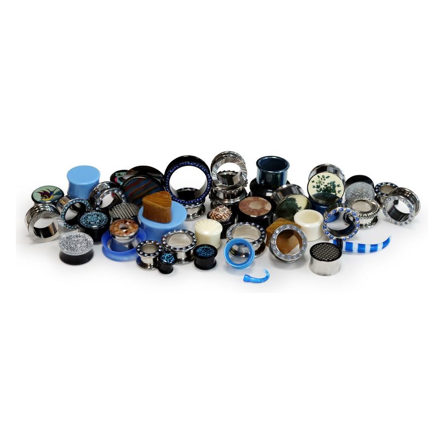 Allora questo set è proprio quello che fa per te. Il “Beach Set” è composto da 46 plug, tunnel e mezzelune realizzati in una grande varietà di materiali, come acciaio inossidabile, acrilico, silicone, legno, titanio e PMMA.