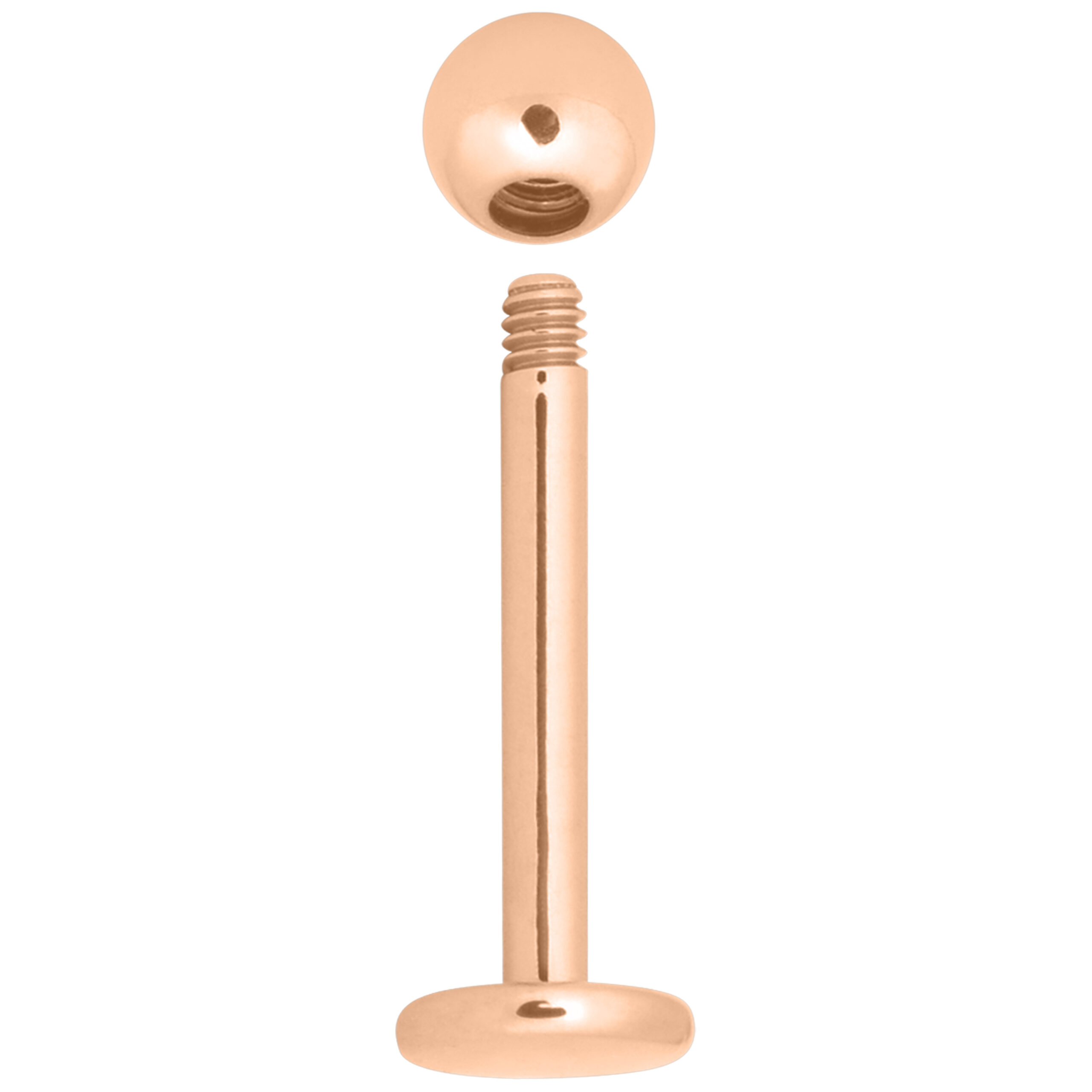 Il gioiello perfetto per ottenere la massima soddisfazione del cliente! La parte inferiore del gioiello è appiattita, mentre l’estremità superiore è chiusa da una pallina filettata. La filettatura dello stelo è esterna.