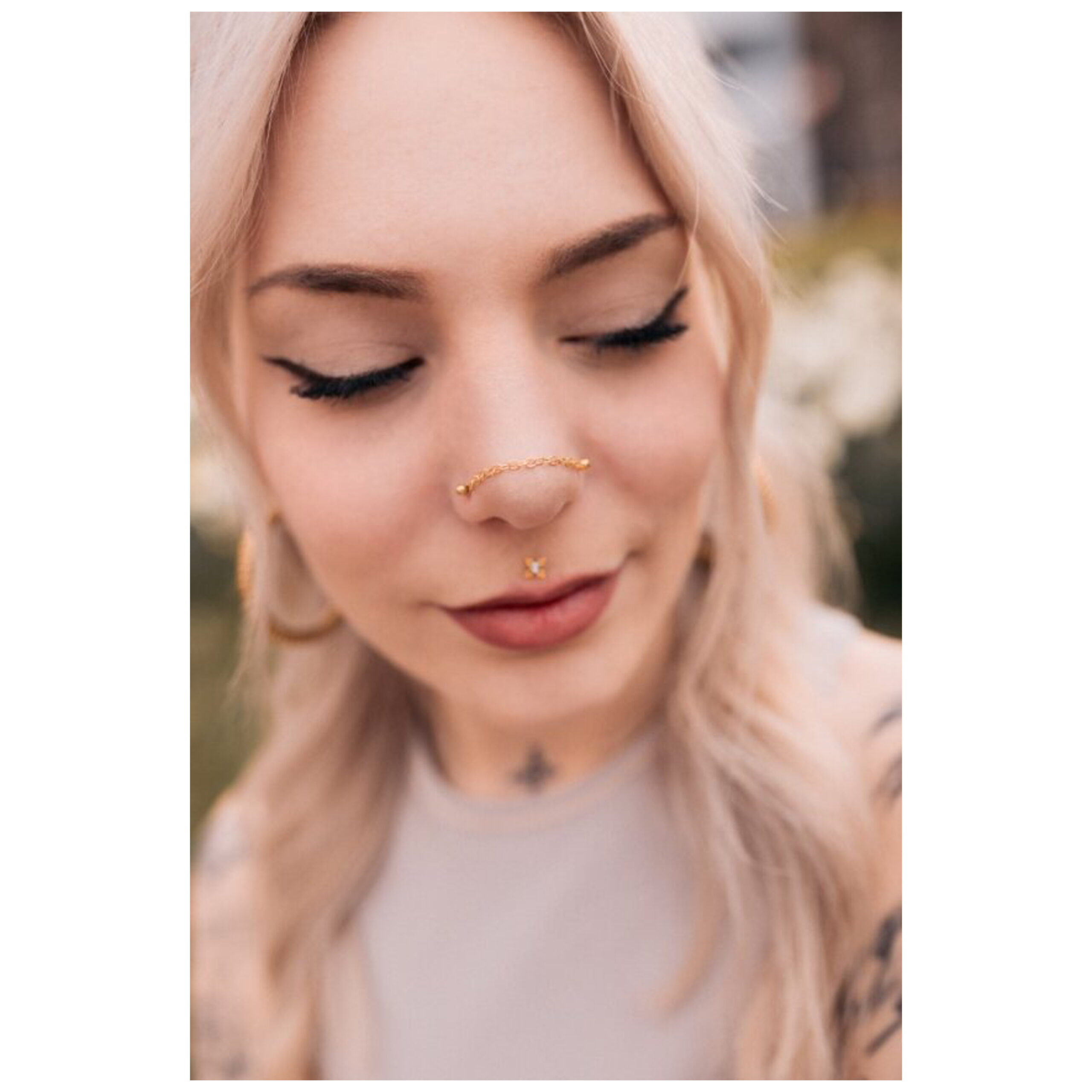 Con le nostre catene per piercing, puoi portare il tuo stile di piercing a un livello completamente nuovo! Sii creativo e collega le catene ai tuoi piercing alle narici, ai tuoi piercing alle orecchie o usa le catene sulla parte anteriore e posteriore dei singoli piercing! Le catene possono essere utilizzate con tutti i piercing fino a 1,6 mm di diametro. Per farlo, apri l’anello o svita i terminali del piercing che vuoi collegare, inserisci gli anelli di collegamento della catena e riavvita i terminali.