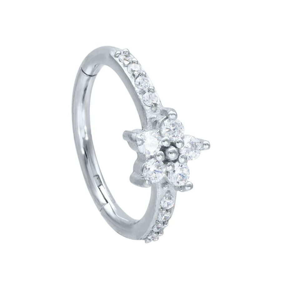 Anello Clicker Fiore Cristalli Acciaio
