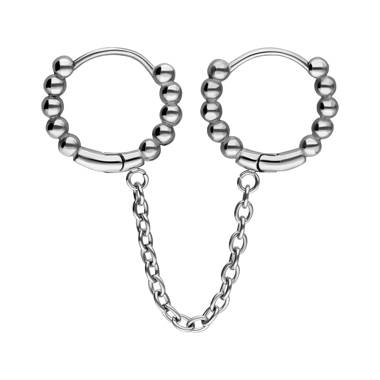 Con questi bellissimi huggies, potrete collegare elegantemente due dei vostri piercing preferiti. Le piccole bolle rendono il vostro look un vero e proprio eye-catcher.