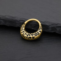 Clicker realizzato in titanio da implantologia (Ti6AL4V ELI ASTM F-136), sinonimo di massima qualità, durata e comfort. Il motivo smaltato dai colori resistenti mantiene la sua brillantezza nel tempo, mentre il rivestimento in oro PVD conferisce una lucentezza elegante che non sbiadisce.