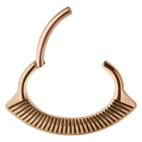 Questo particolare gioiello presenta una colorazione oro rosa e diversi intagli nella parte inferiore del piercing che lo rendono molto elegante.