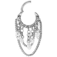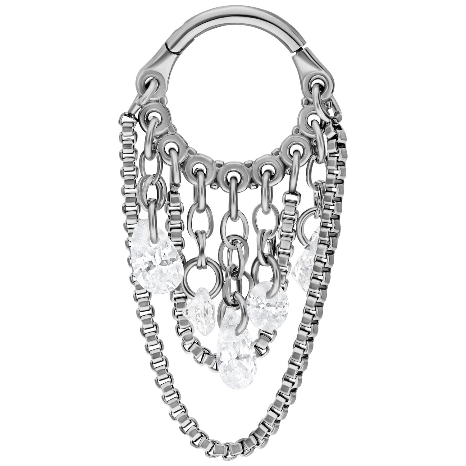 Vuoi distinguerti? Allora il Crystal Snakechain Clicker è il tuo nuovo signature piece. Questo gioiello esclusivo in titanio lucidato a specchio combina catene snake dallo stile urban con gocce di cristallo scintillanti, dando vita a un design pensato per personalità autentiche.
